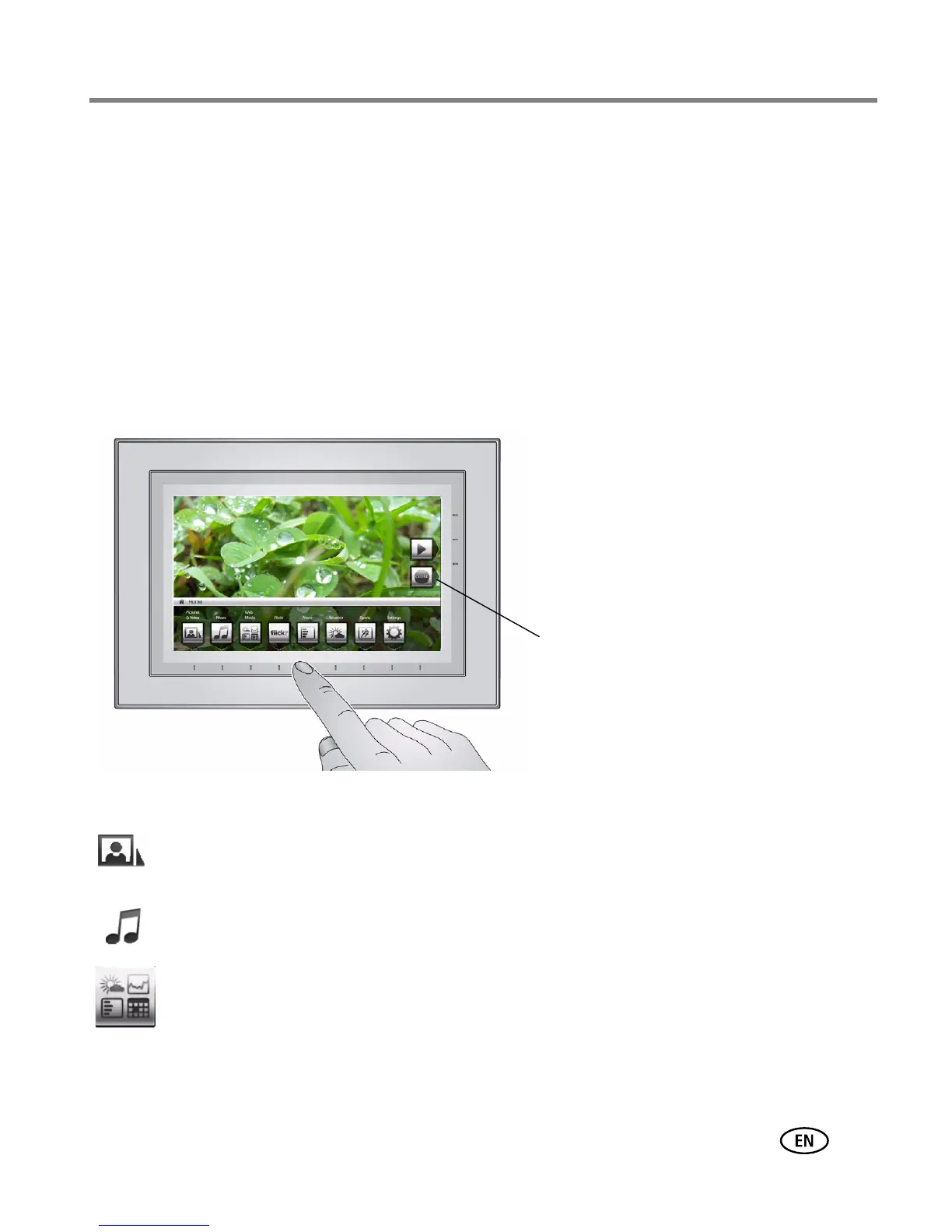 ■ access your pictures, videos, music, and preloaded FRAMECHANNEL photo feeds