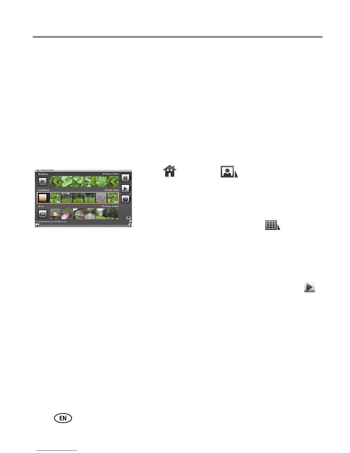 View pictures and videos from the frame’s internal memory or any connected picture