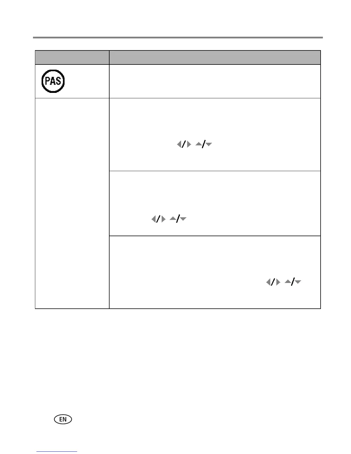 select settings (see Manual modes P, A, and S, page 31). Press the