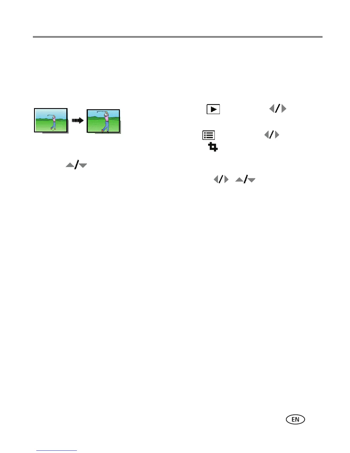 4 Press the Zoom lever (T/W) to zoom in/out. Press to move the crop