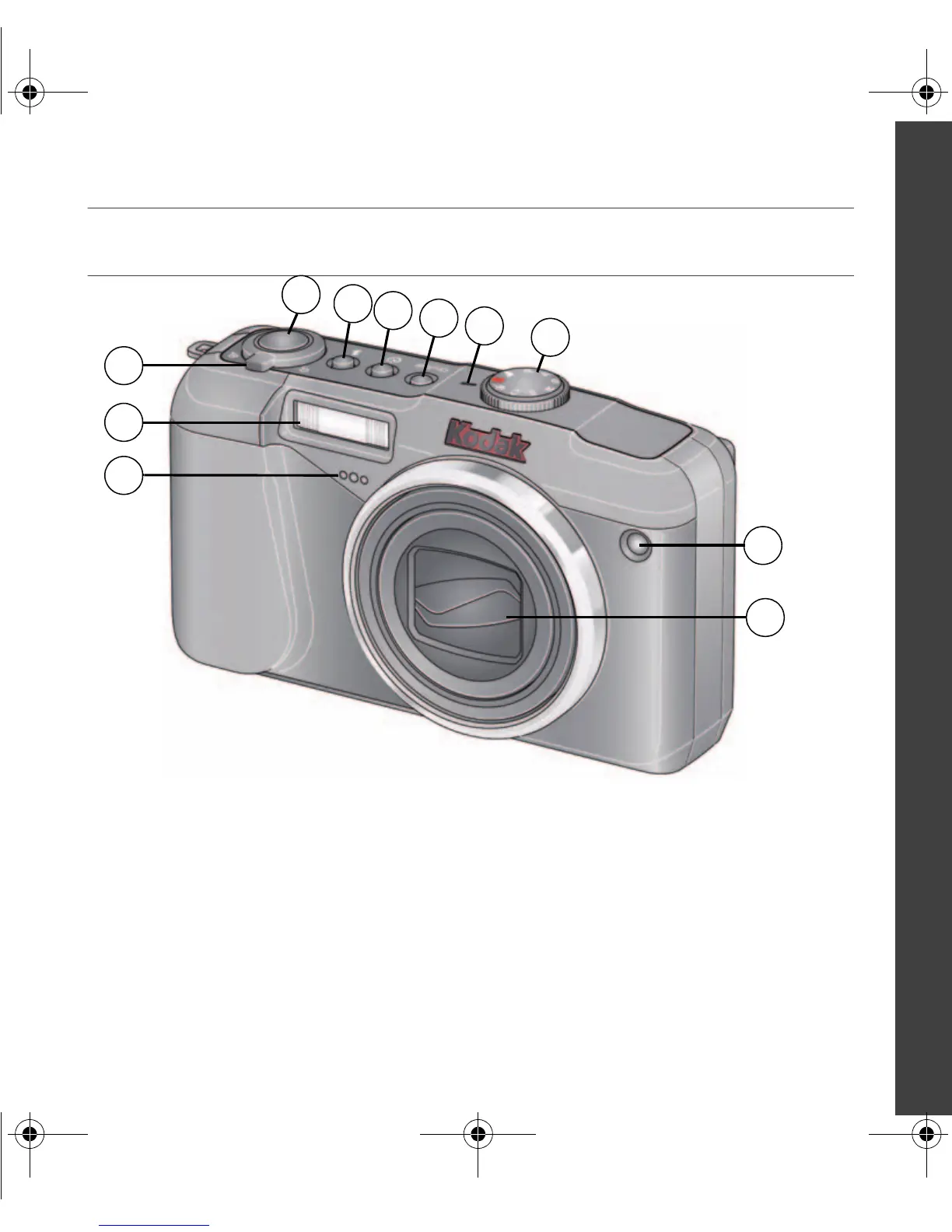 1 Shutter button 7 Self-timer/Video/AF Assist light