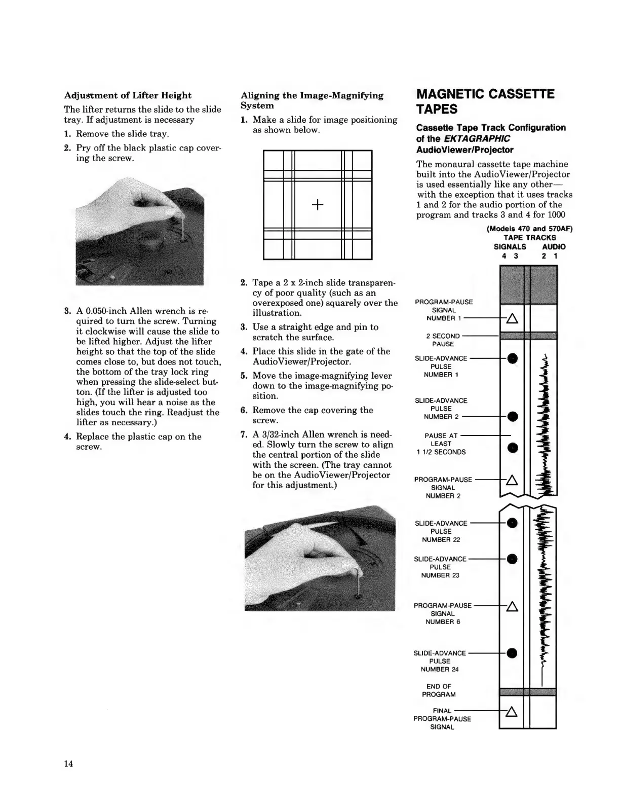 Kodak EKTAGRAPHIC 570AF - Aligning the Image-Magnifying System; Magnetic Cassette Tapes; Cassette Tape Track Configuration of the EKTAGRAPHIC Audio Viewer;Projector.14
