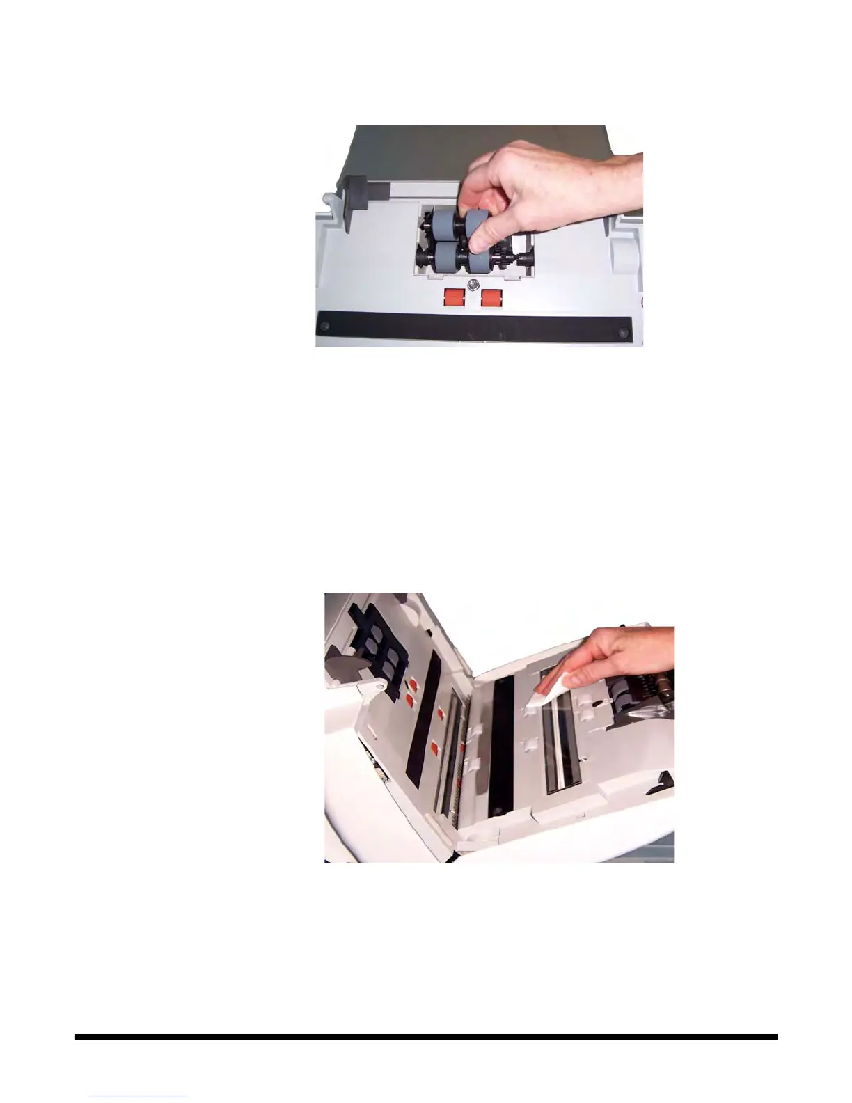 Cleaning the imaging area 1. Wipe the upper and lower imaging area using a Staticide wipe. Be