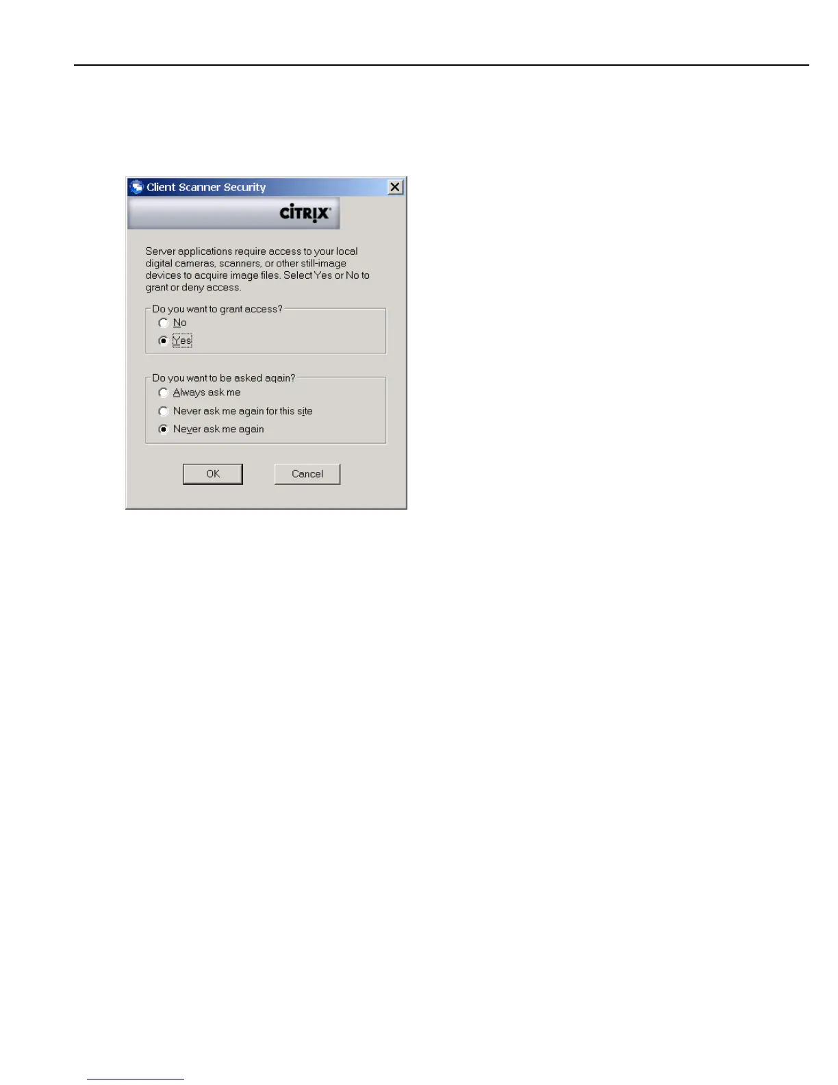 Click ‘Yes’ and ‘Never Ask Me Again’ then ‘OK’