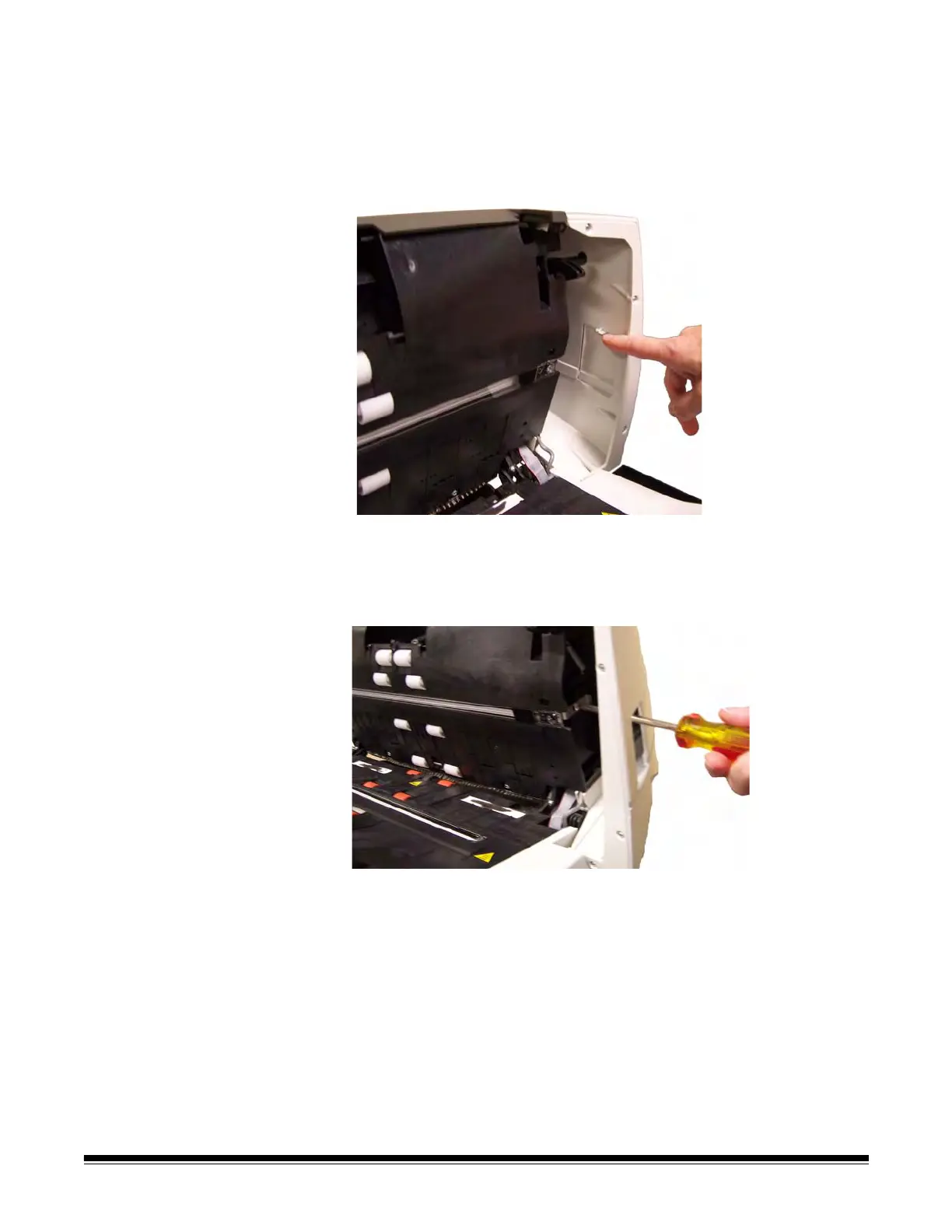 screwdriver through the door opening to access the upper imaging