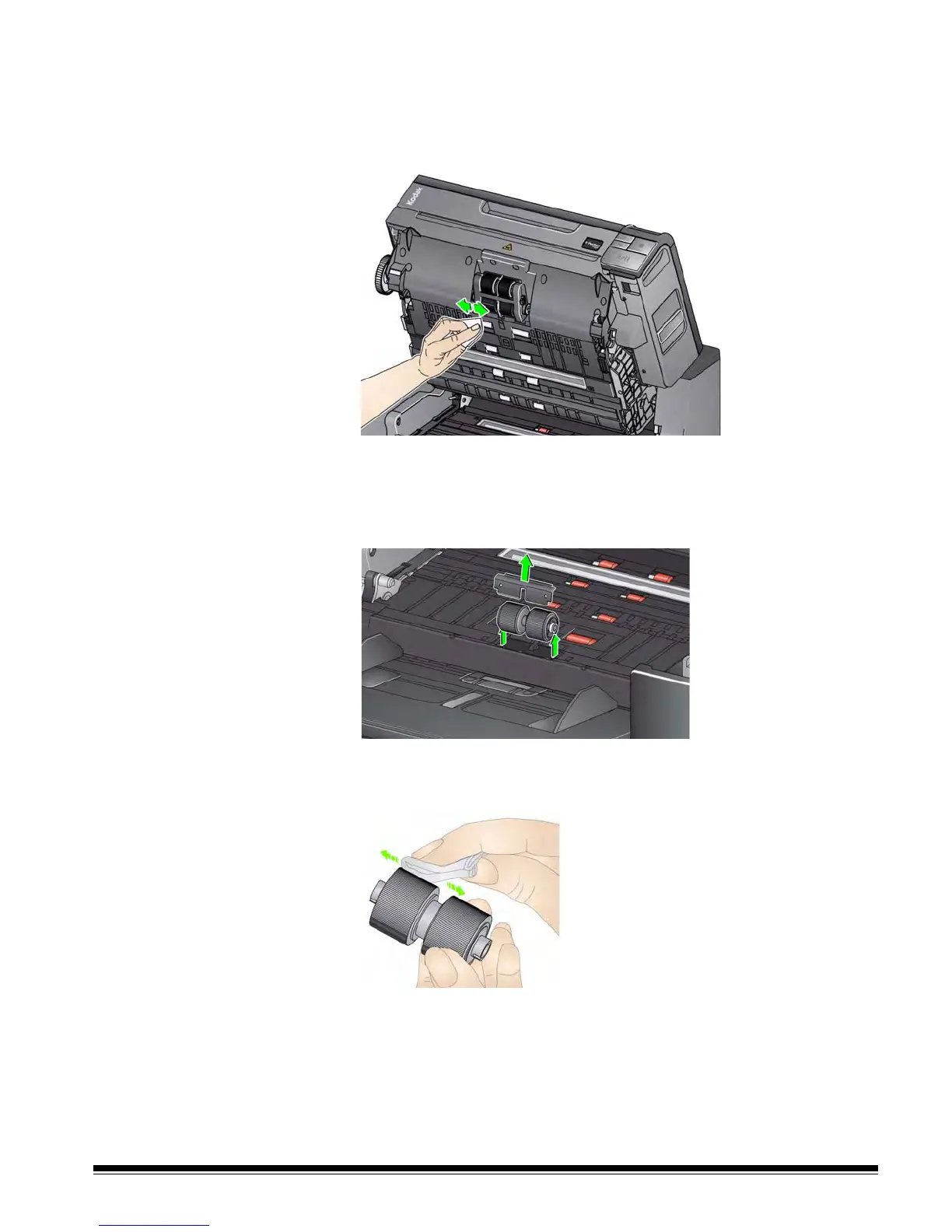 Cleaning the rollers Cleaning the rollers includes all of the rollers in the transport area, the