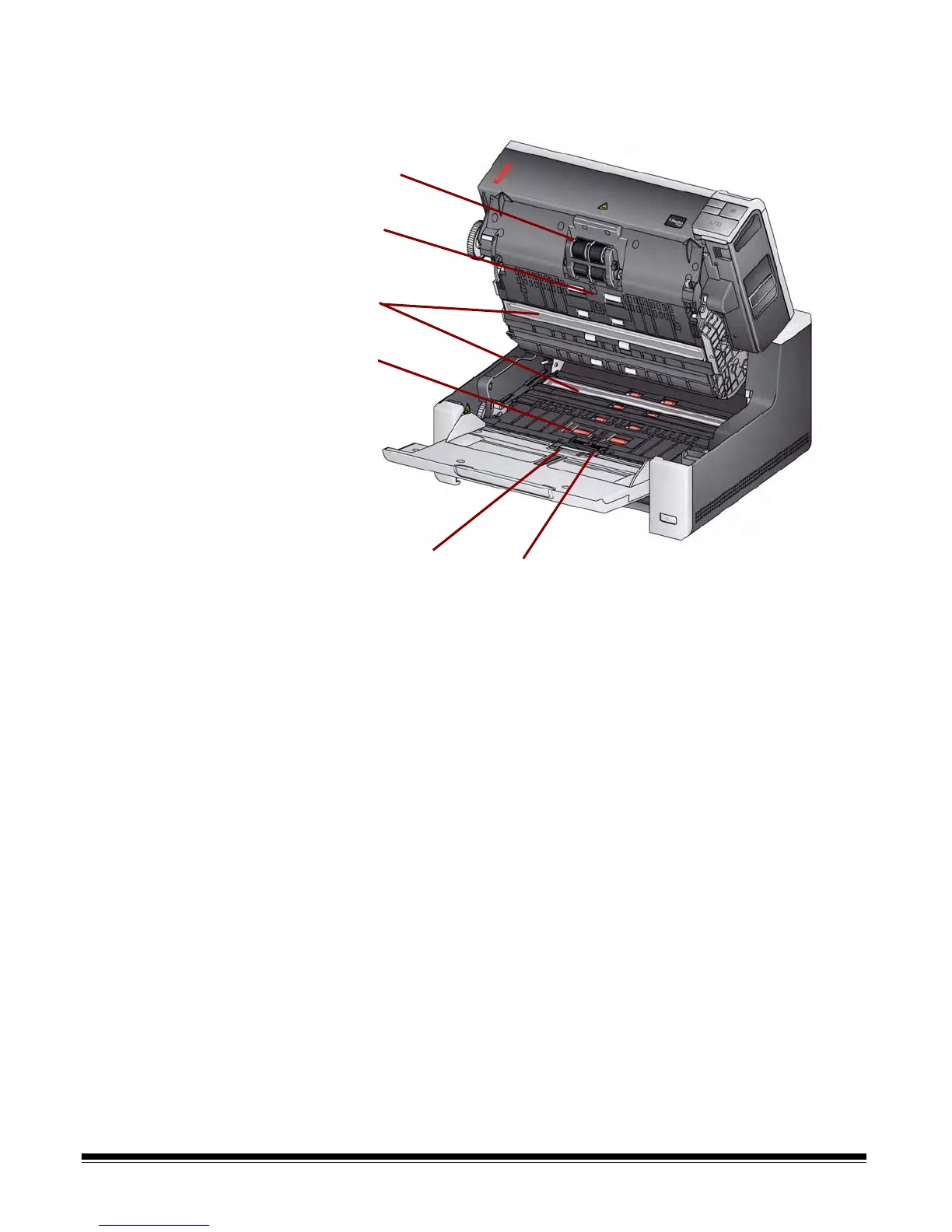 Inside view When you pull the scanner cover release latch forward, the following internal