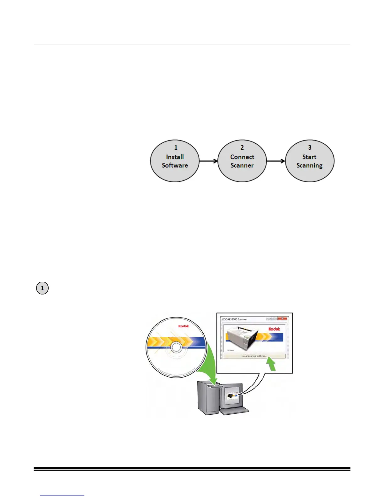 1. Insert the Kodak i3000 Scanner Installation CD in the CD-ROM drive. The
