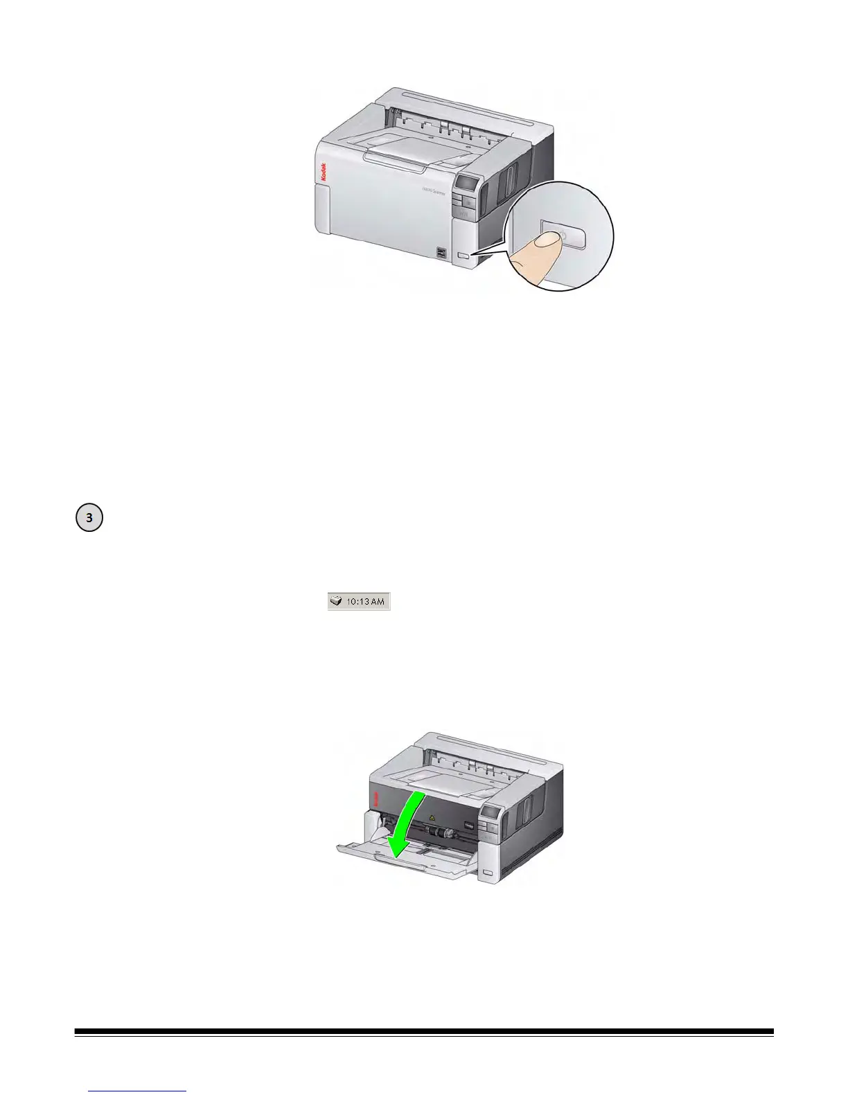 1. Be sure the scanner is on and ready to scan (Start/Resume/Pause button