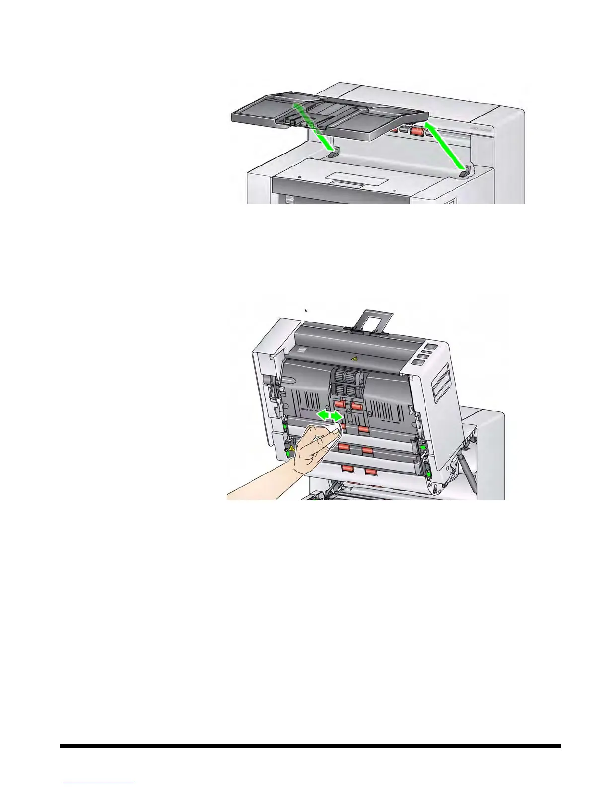 Cleaning the rollers Cleaning the rollers includes all of the rollers in the transport area, the
