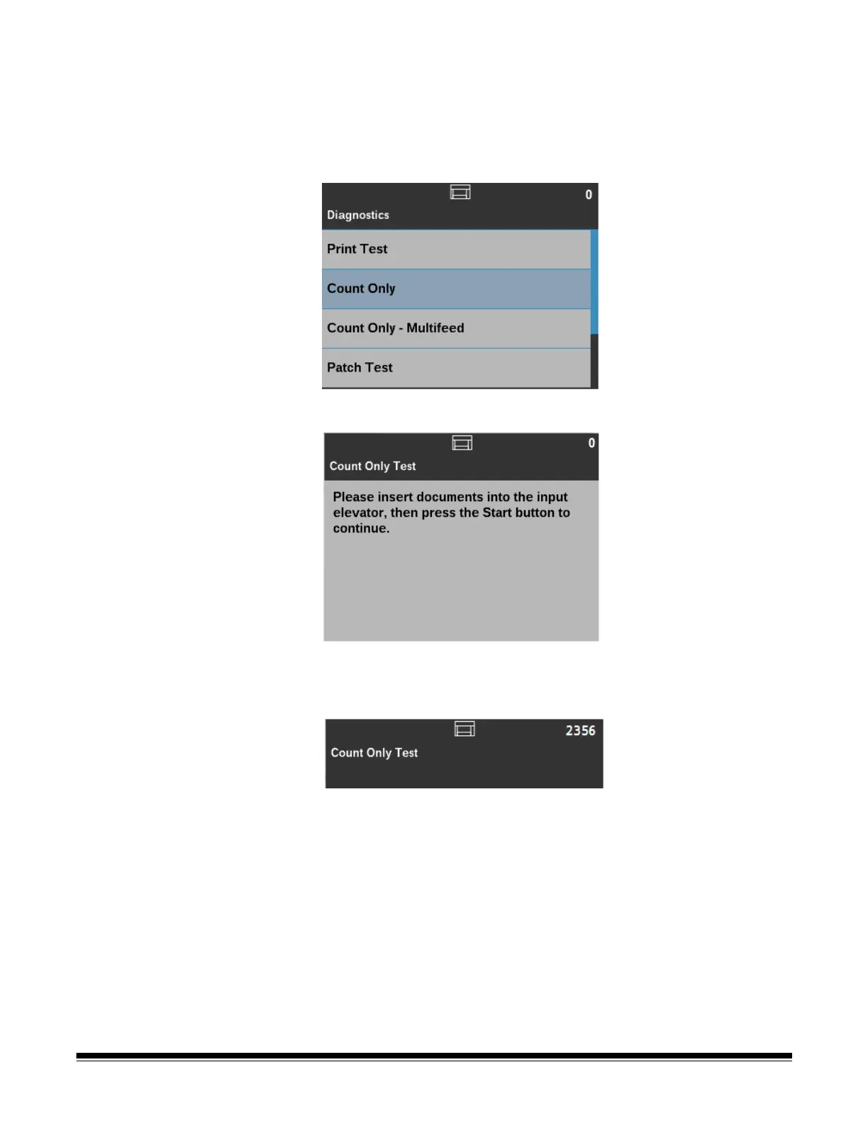 The Count Only Test screen will be displayed.