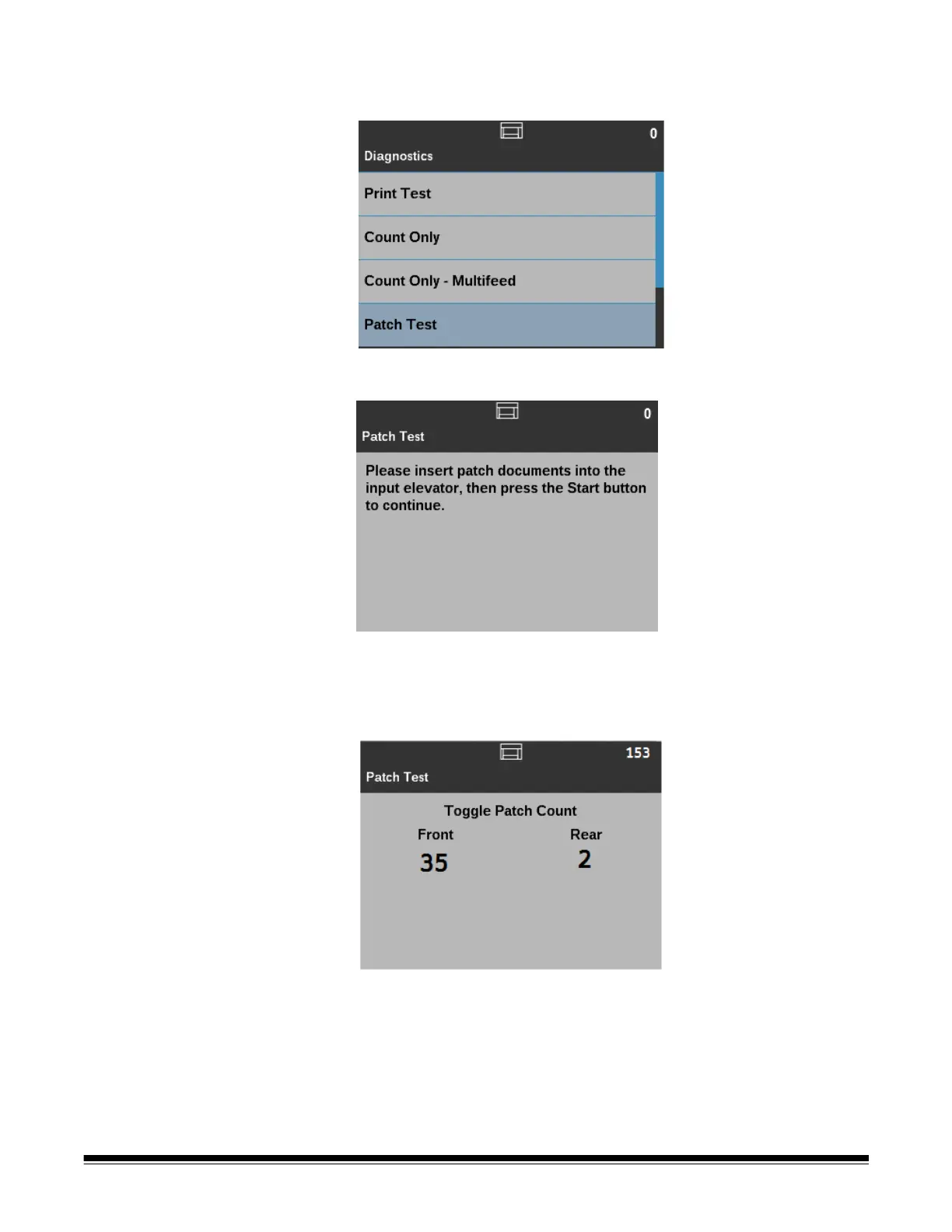 1. Select Patch Test from the Diagnostics screen.