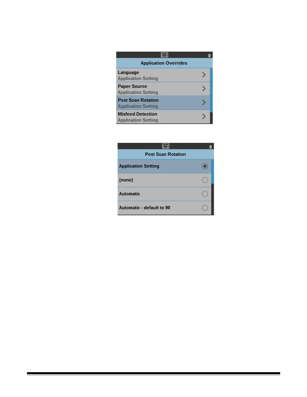 2. Select Post Scan Rotation from the Application Overrides screen.