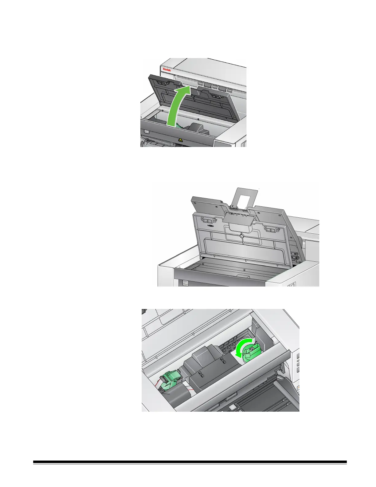 output tray, then lift the printer access cover and position the printer