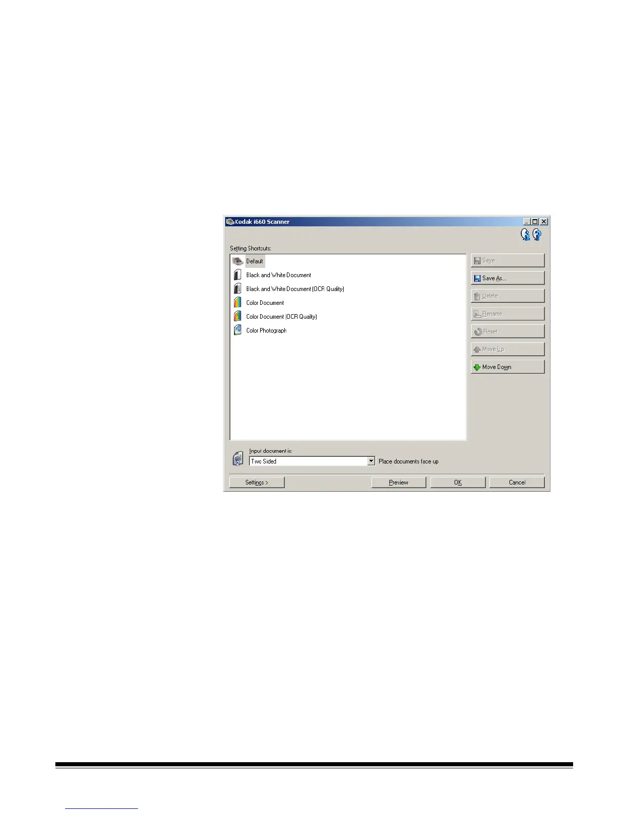 Series Scanners come with predefined Setting Shortcuts for the most