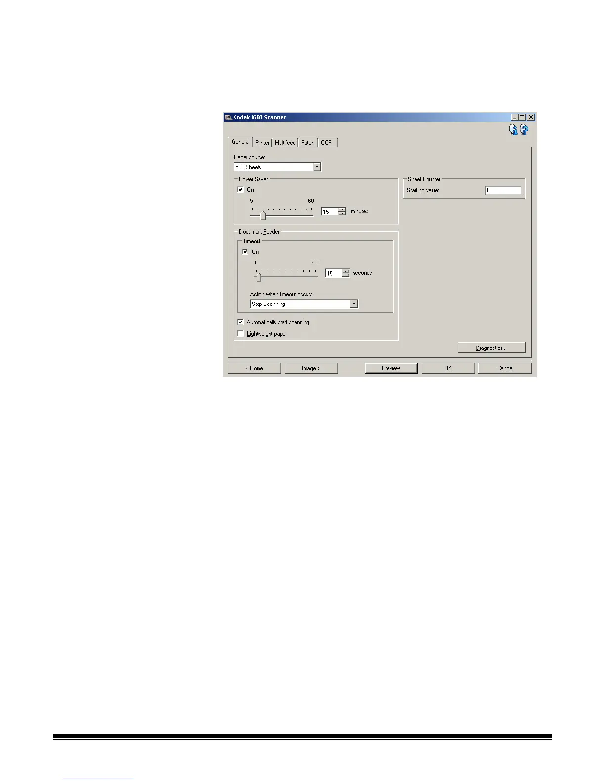 Changing Device settings 1. Select the Setting Shortcut from the main Kodak Scanner window