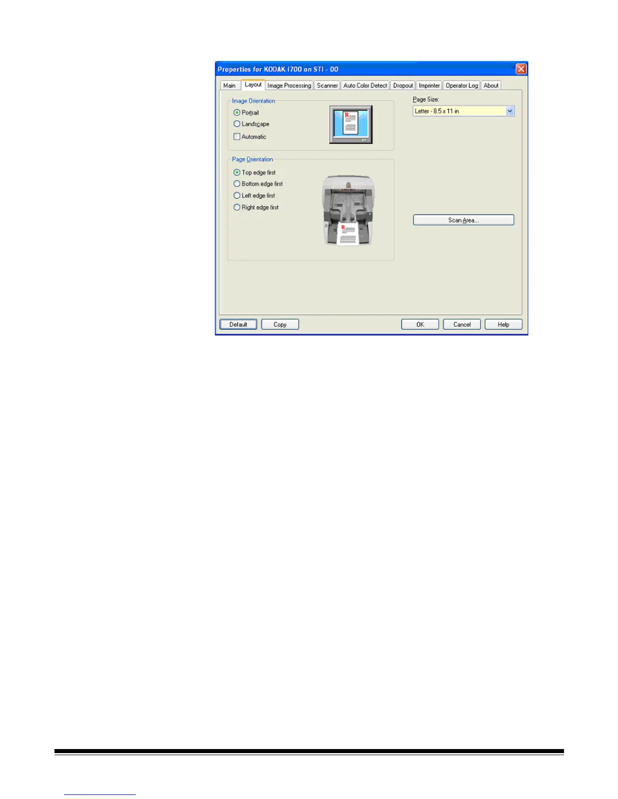 Scan Area — displays the Scan Area dialog box. The Scan Area