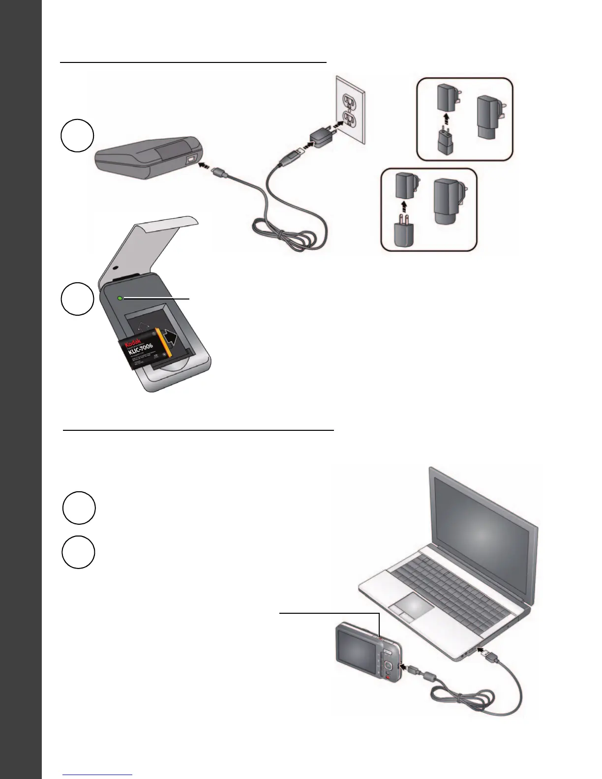 • Steady On green: finished charging