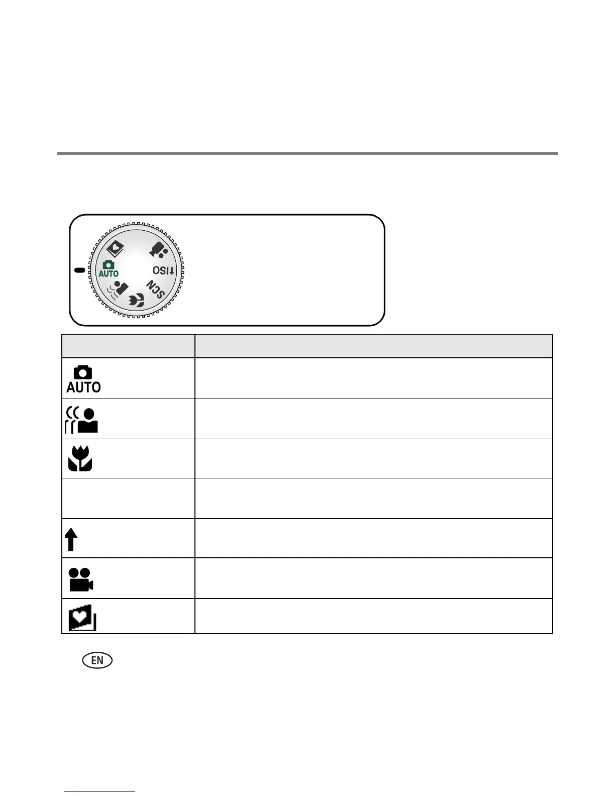 Favorites Reviewing favorite pictures. (See page 5.)