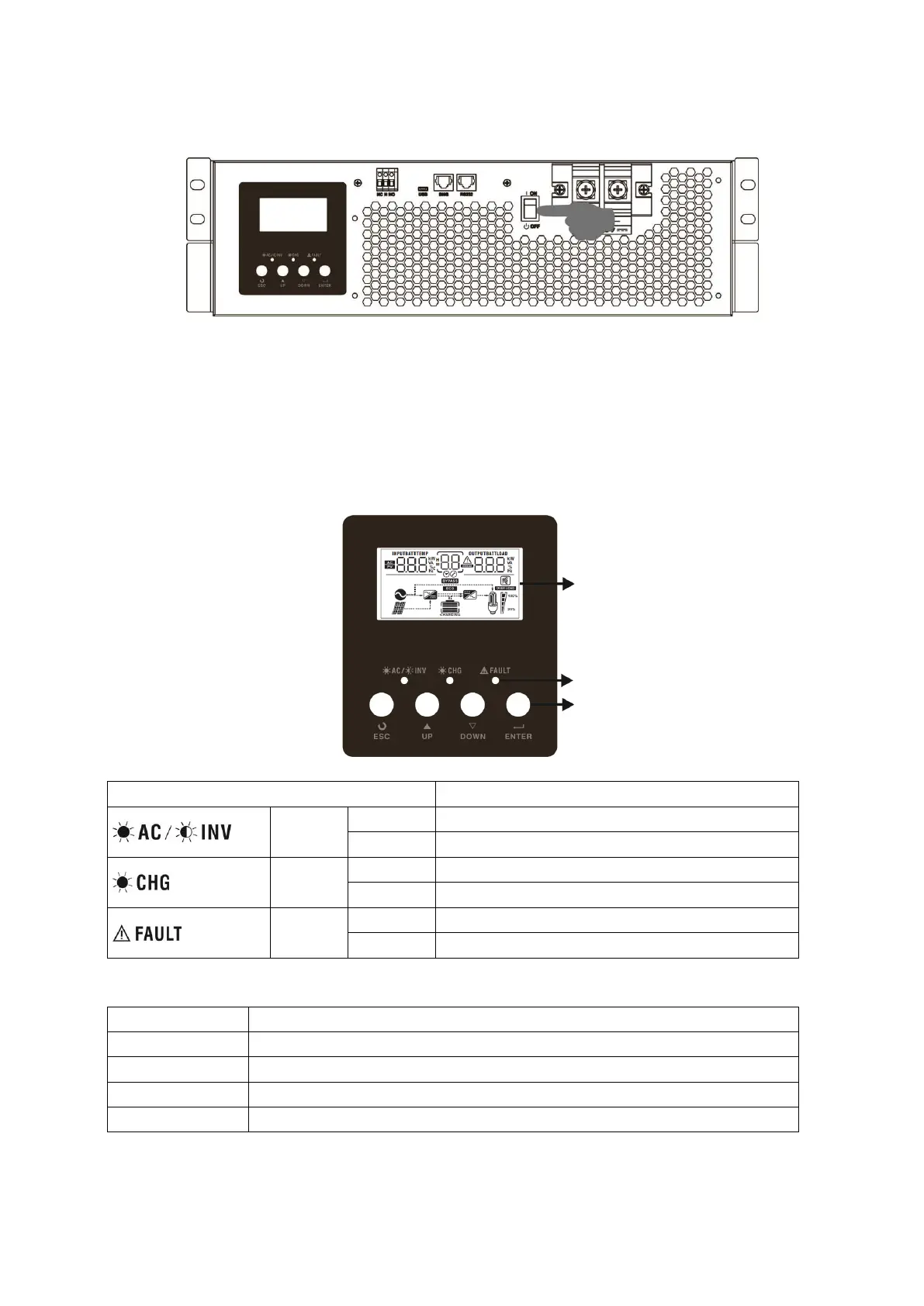 The operation and display panel, shown in below chart, is on the front panel of the inverter. It includes
