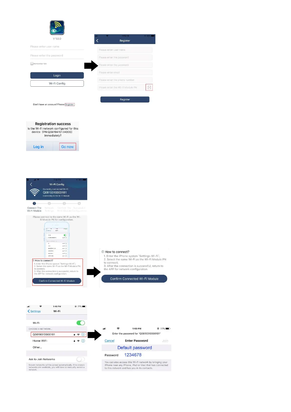 Wi-Fi PN number and enter default password “12345678”.