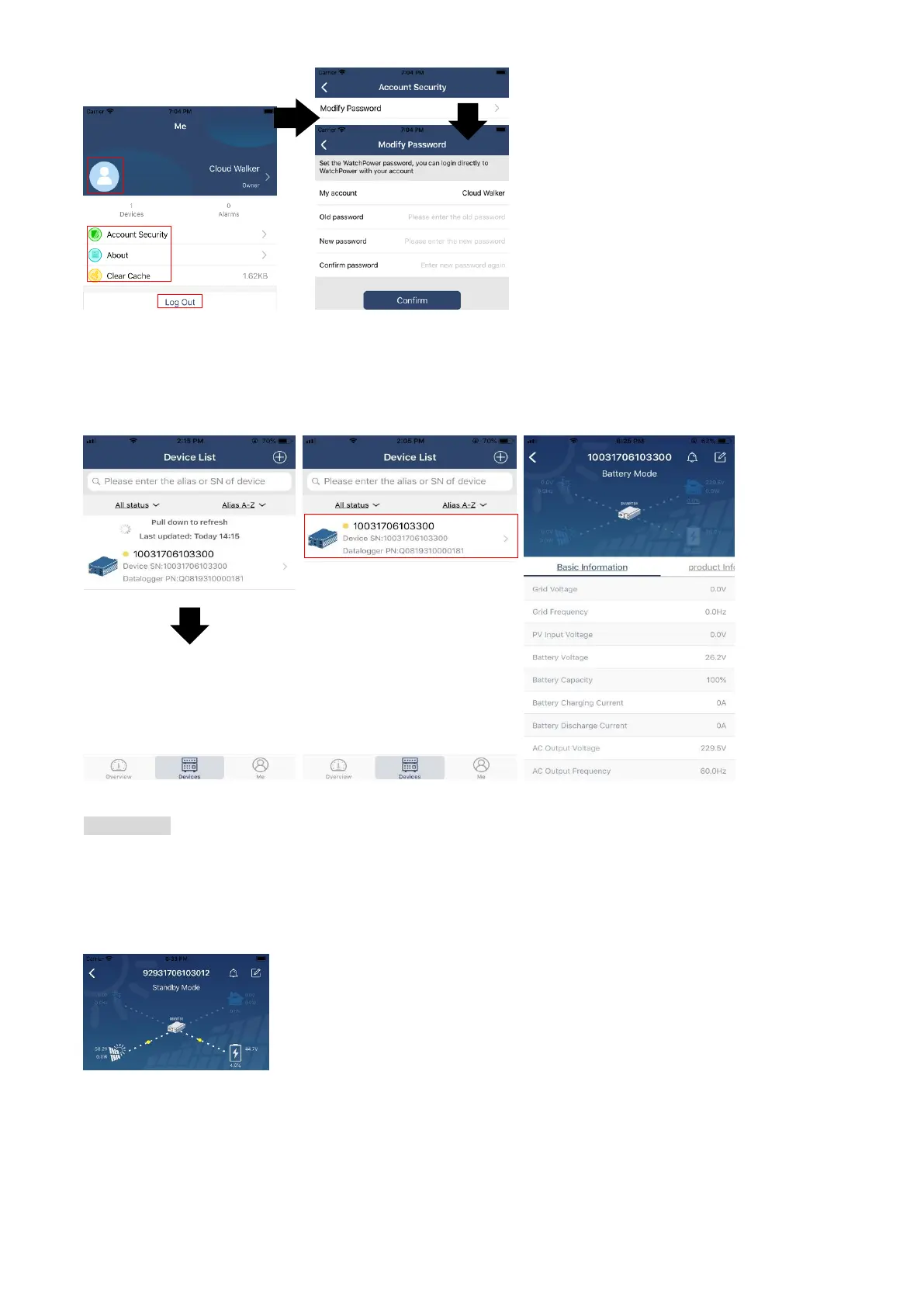 On the top of screen, there is a dynamic power flow chart to show live operation. It contains five icons to