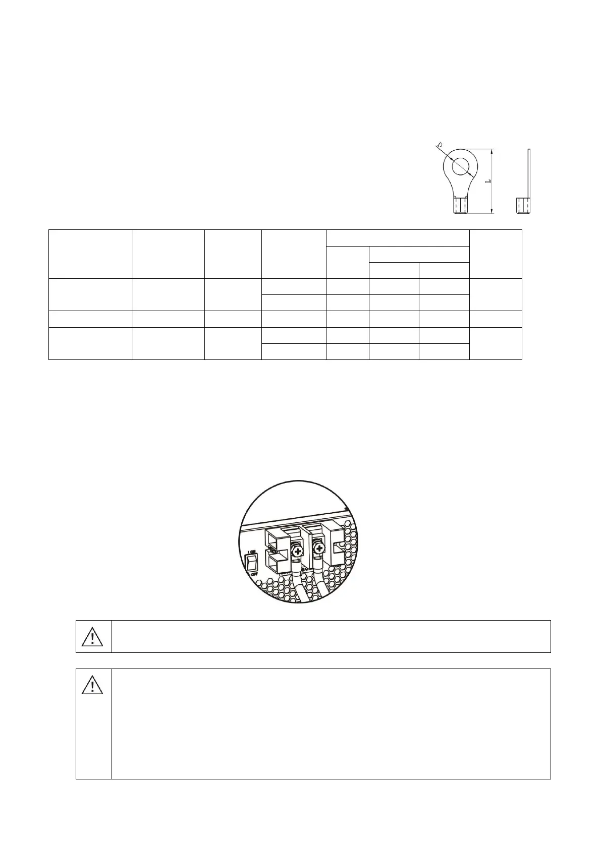 CAUTION!! Do not place anything between the flat part of the inverter terminal and the ring