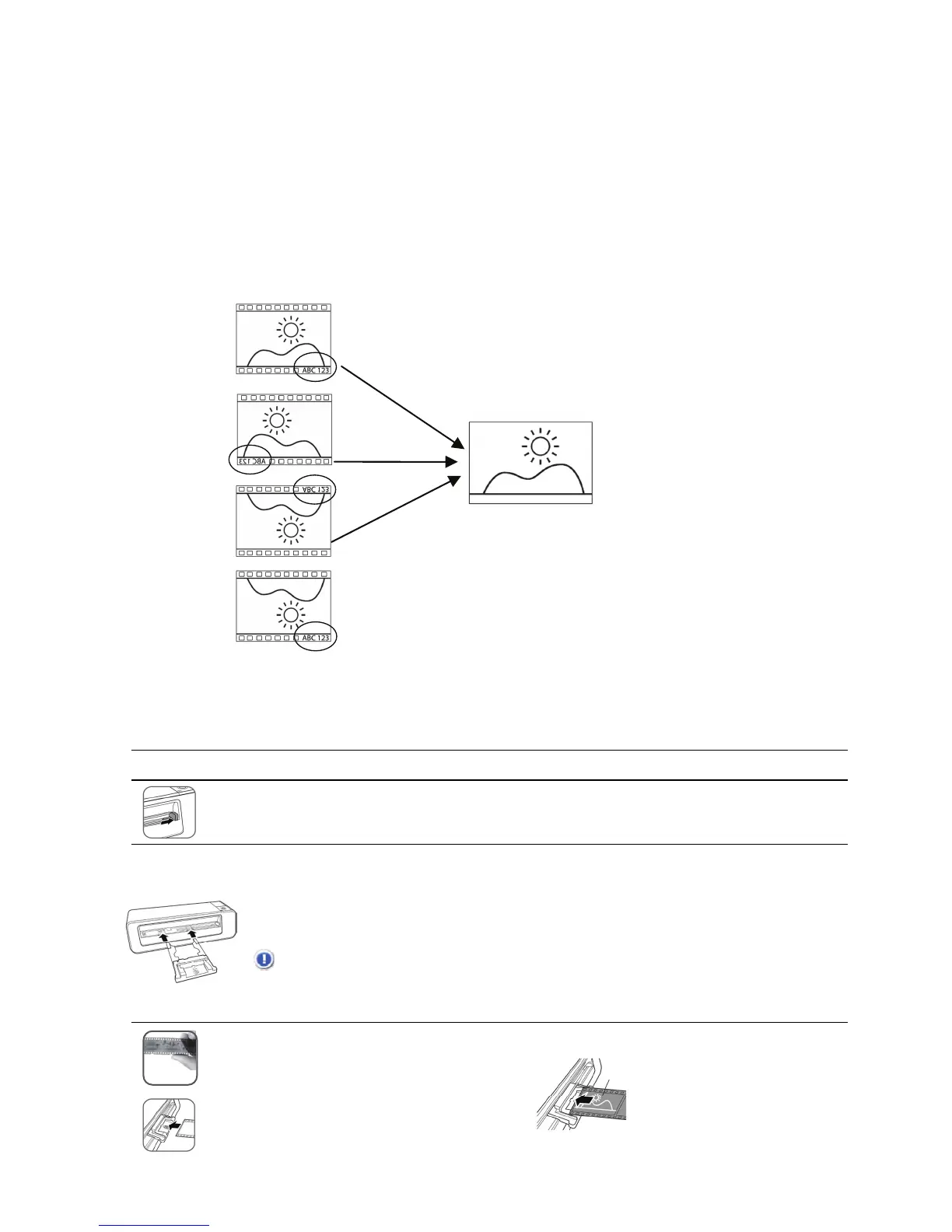 Si vous introduisez la bande du film avec l’image en miroir ou à l’envers, le scanneur ajustera automatiquement