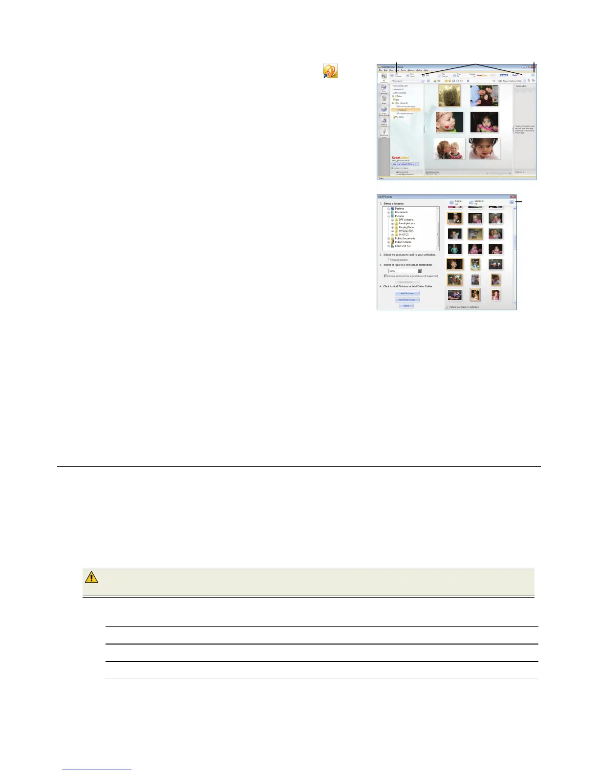 7. Al usar la fila superior de opciones en la ventana EASYSHARE, las
