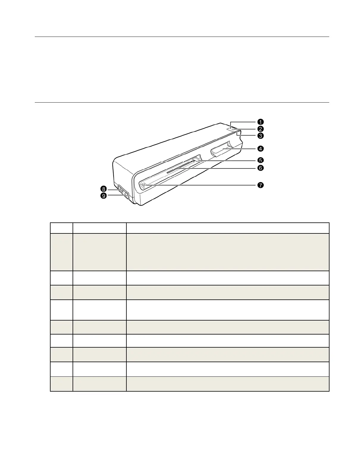 Indicateur de marche Indique l’état de marche du scanneur. (Voir “Indicateurs lumineux” page 5)