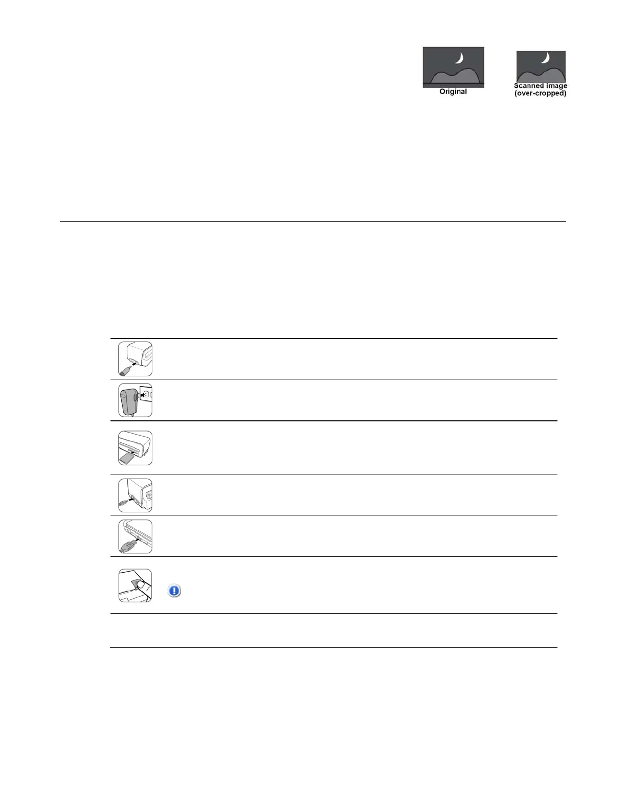 4. Connectez le mini connecteur du câble USB (fourni avec le Scanneur) sur le port mini USB du