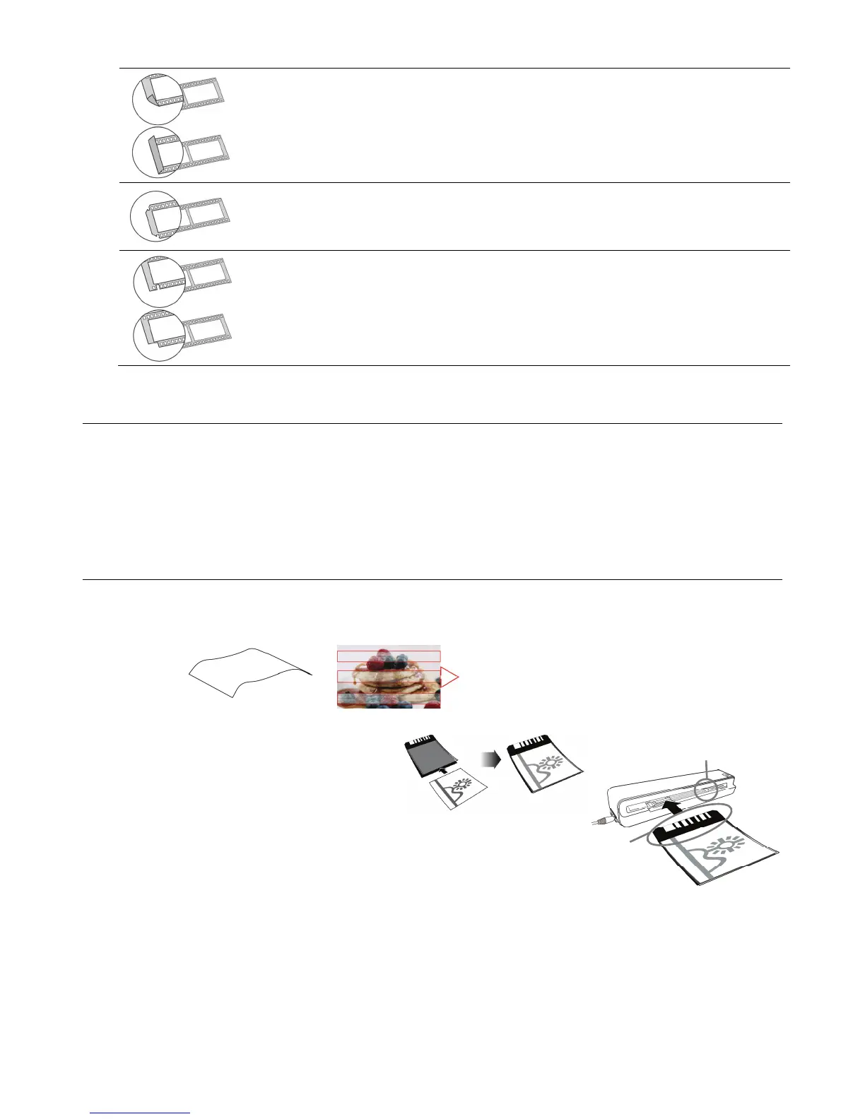3. Les extrémités de la bande de film sont pliées. Coupez les bouts pliés avant de scanner.