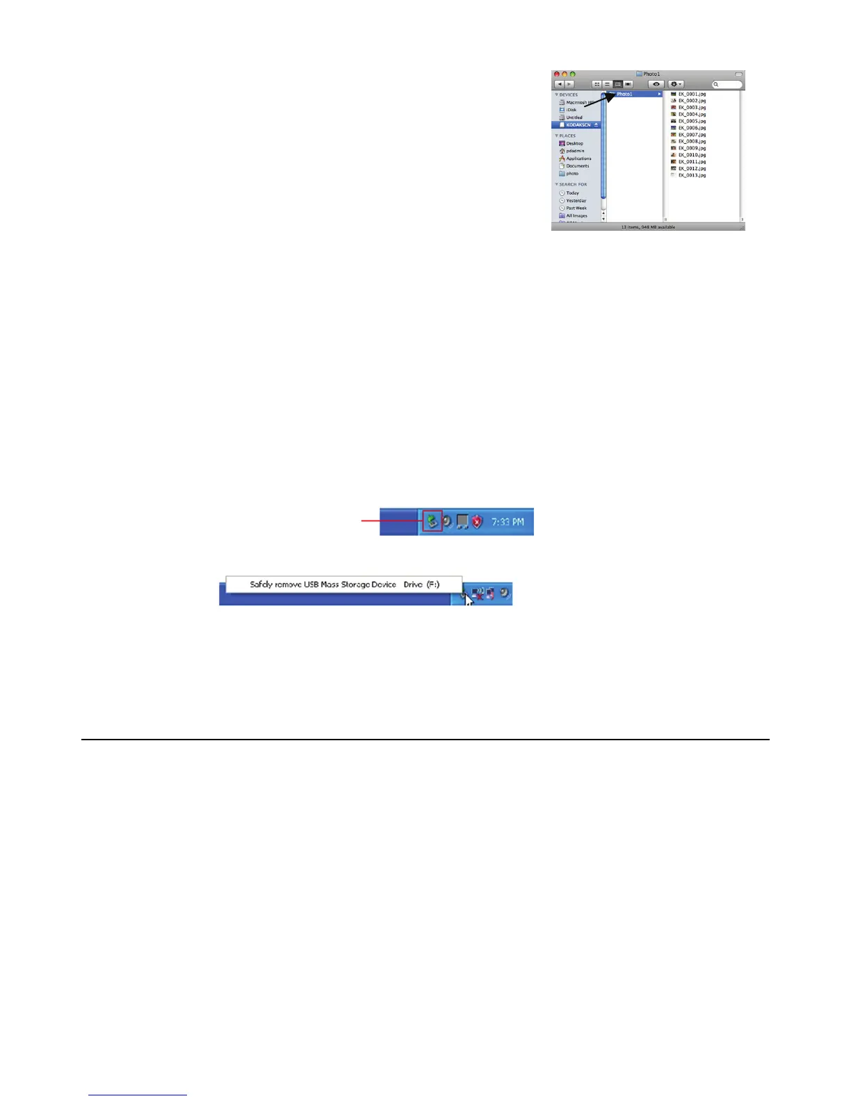 2. Cliquez sur le message ‘Retirez en toute sécurité le dispositif USB de stockage massif [Safely remove USB mass Storage