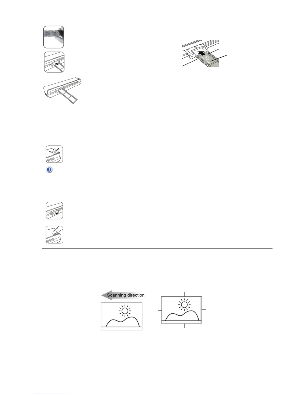 PRECAUCIÓN: Inserte sólo una tira de película por vez e inserte la siguiente tira cuando ya se haya escaneado la