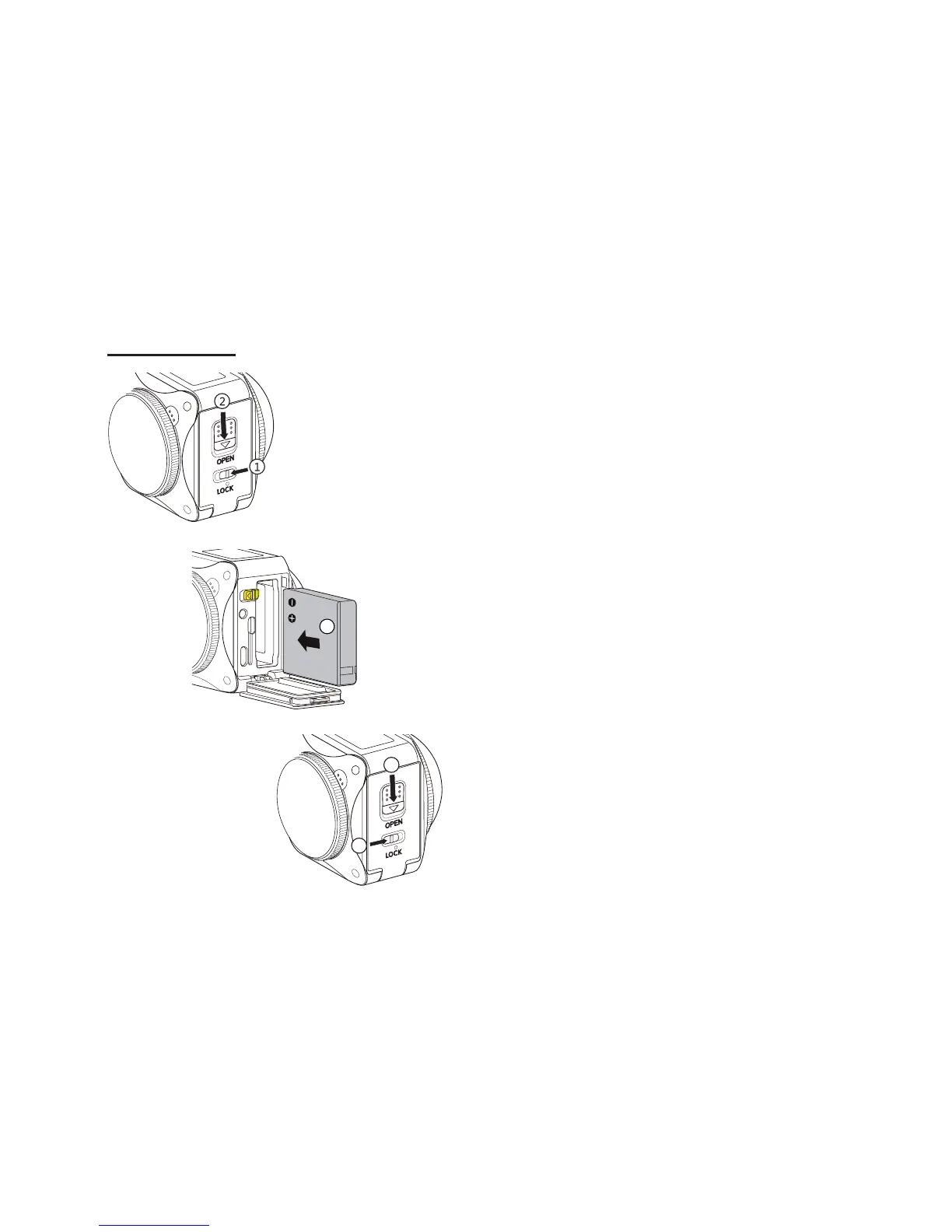 First, set the battery cover lock to the left ʒ , and then push the open switch