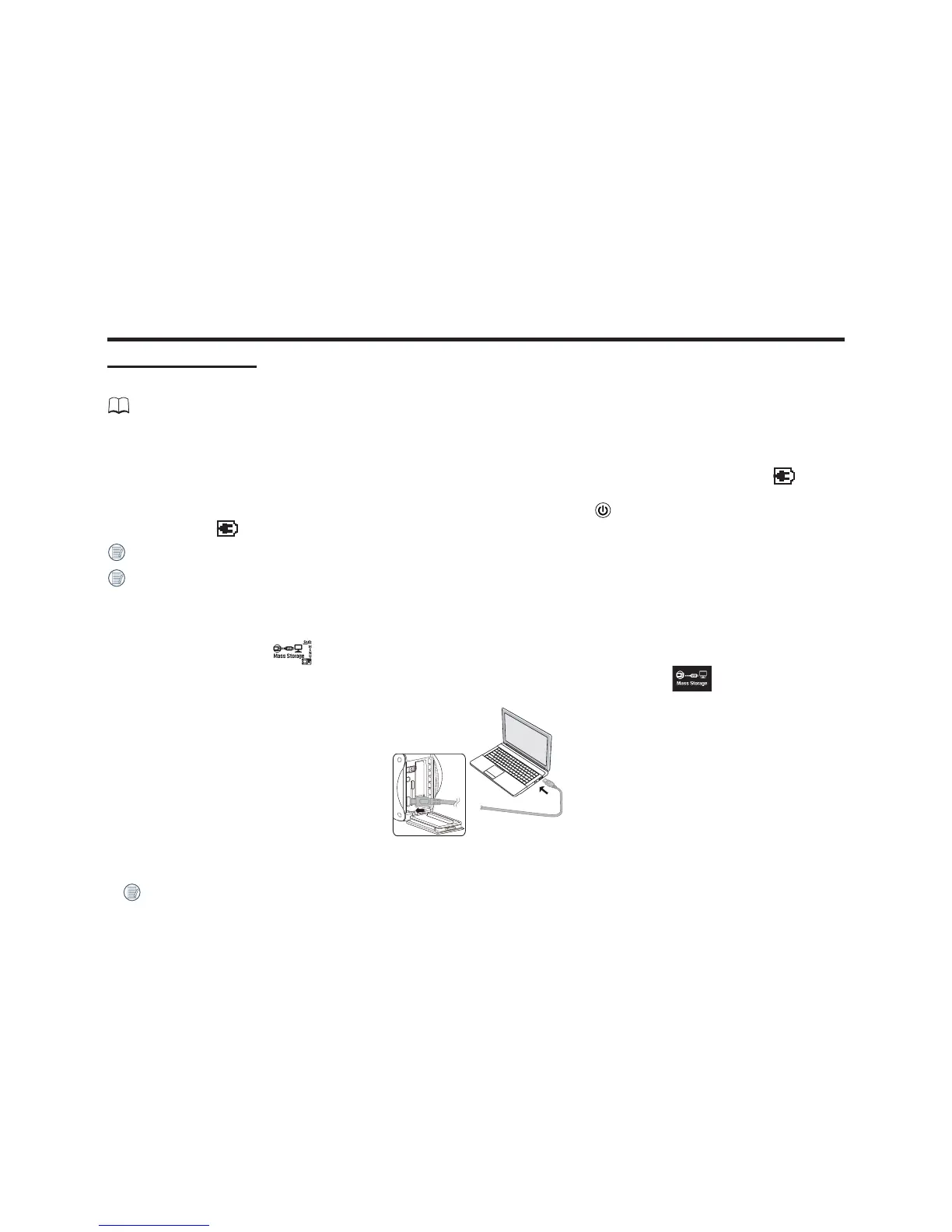 2. Use the Micro USB cable to connect a computer (on) to the camera (on). During the connection, the camera will displa