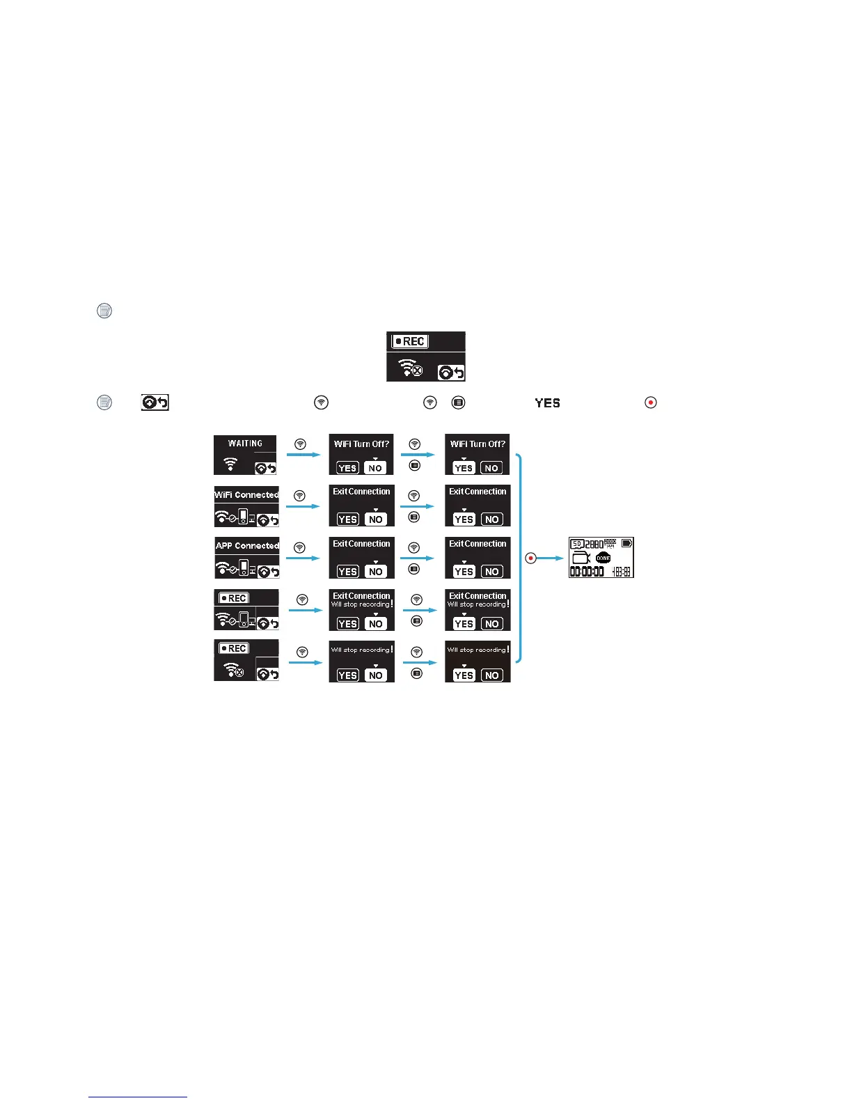 If the Wi-Fi connection is cut o while recording, the camera will continue to record and enter the connectionless recording interface.