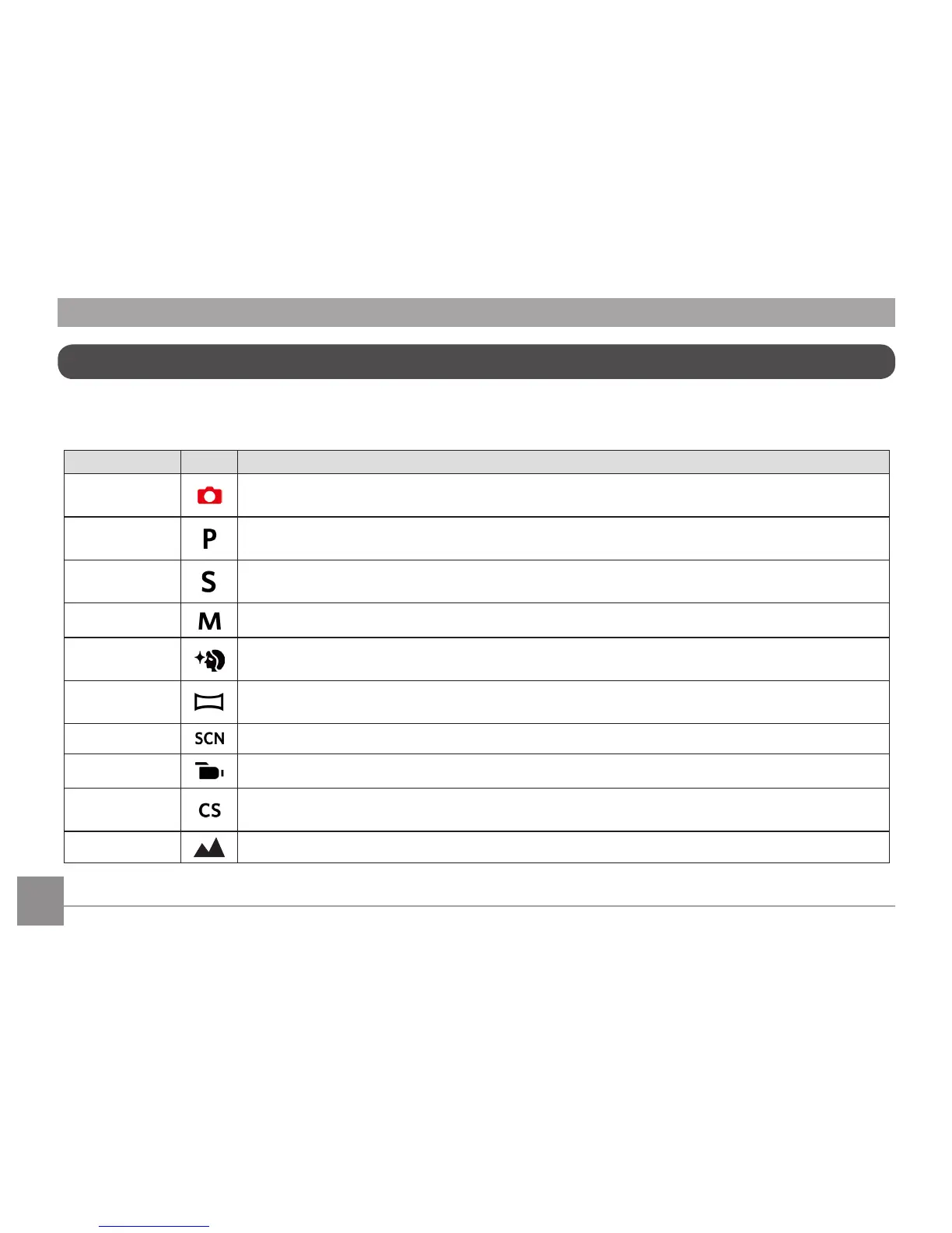 Manual Mode Many of the camera settings can be congured manually in this mode.