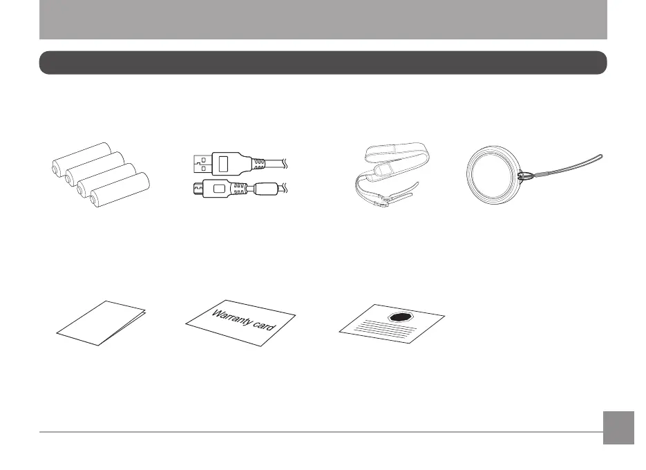Your camera box should contain the camera model you purchased along with the following accessories. If
