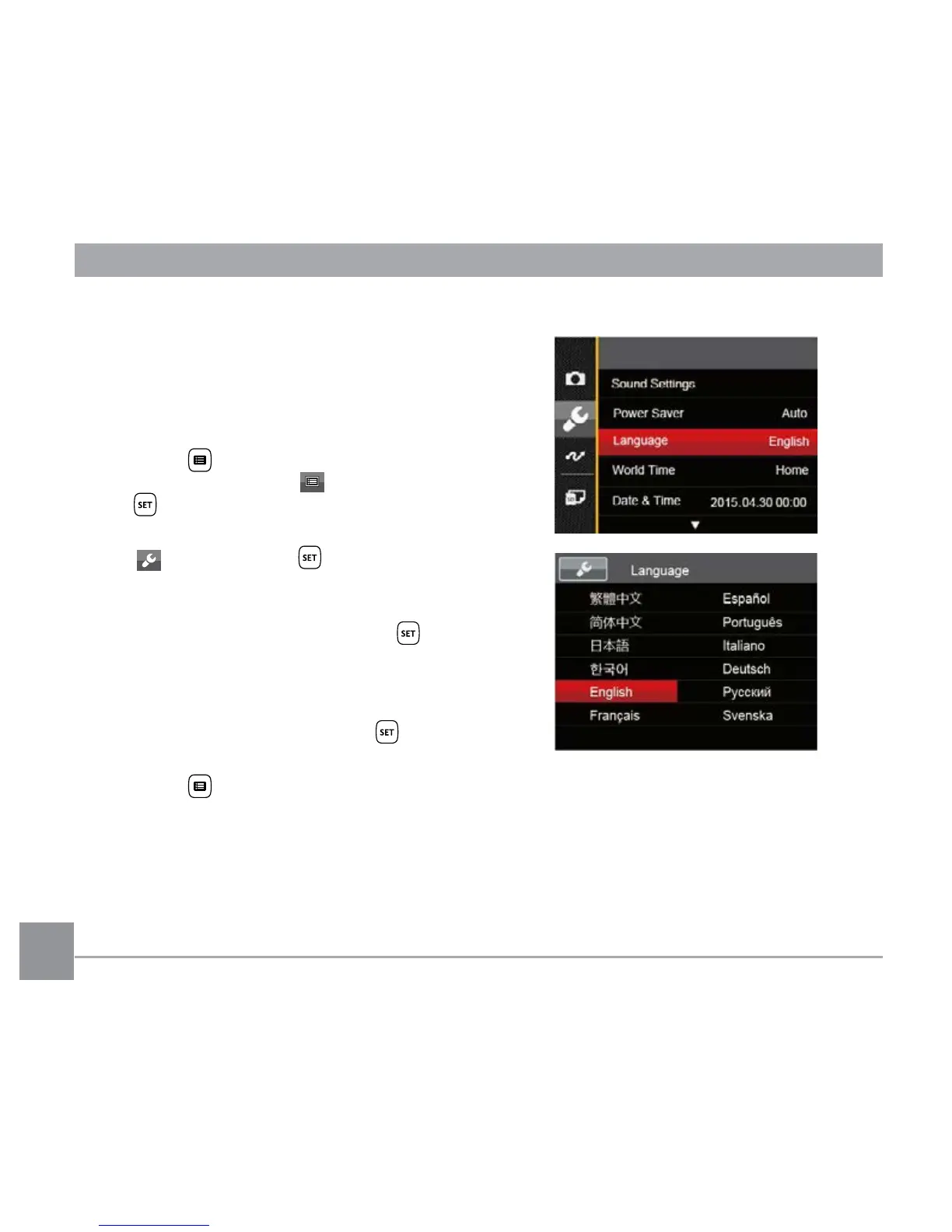 desired language and press the