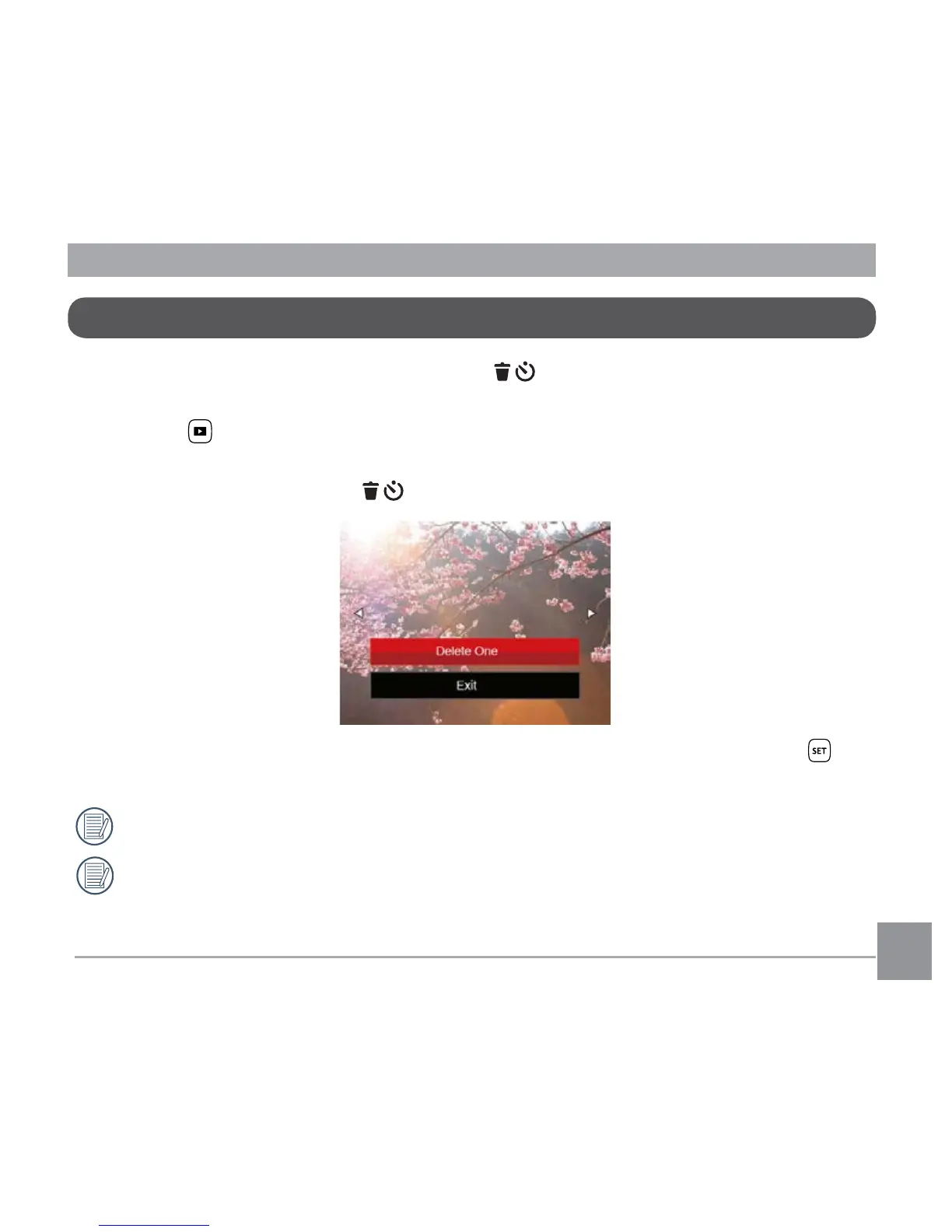 4. Press the up/down arrow buttons to select 「Delete One」or「Exit」and press the