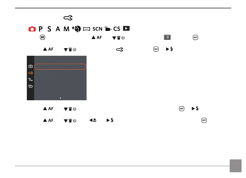 1. Press the button and press the [ ] / [ ] buttons to select . Press the button to enter