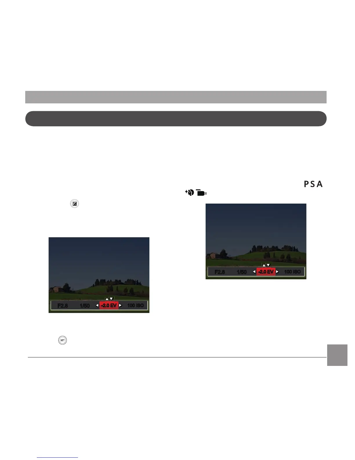 The EV function menu of the camera