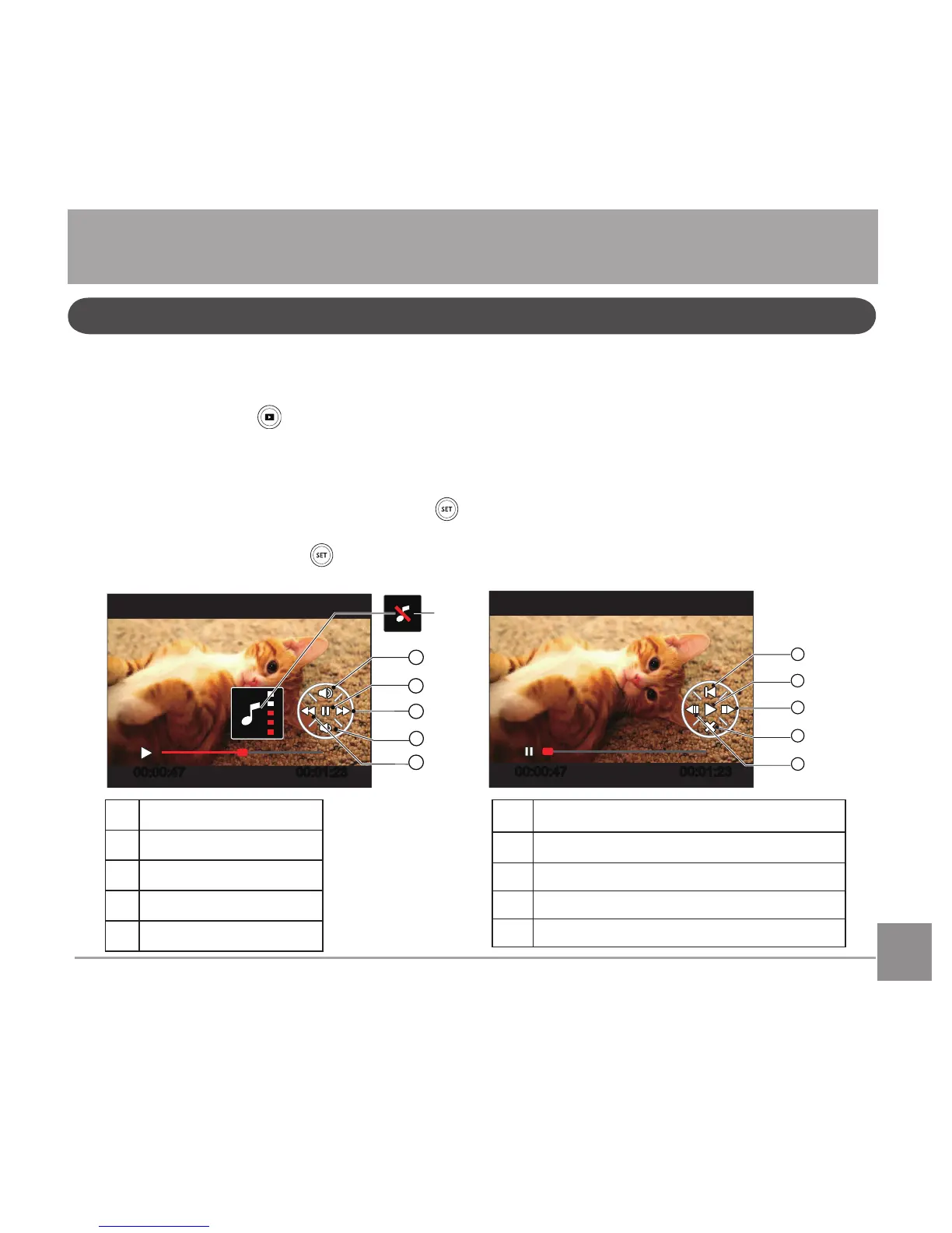 During video playback, the operating instructions will appear on the screen. Press the Left/