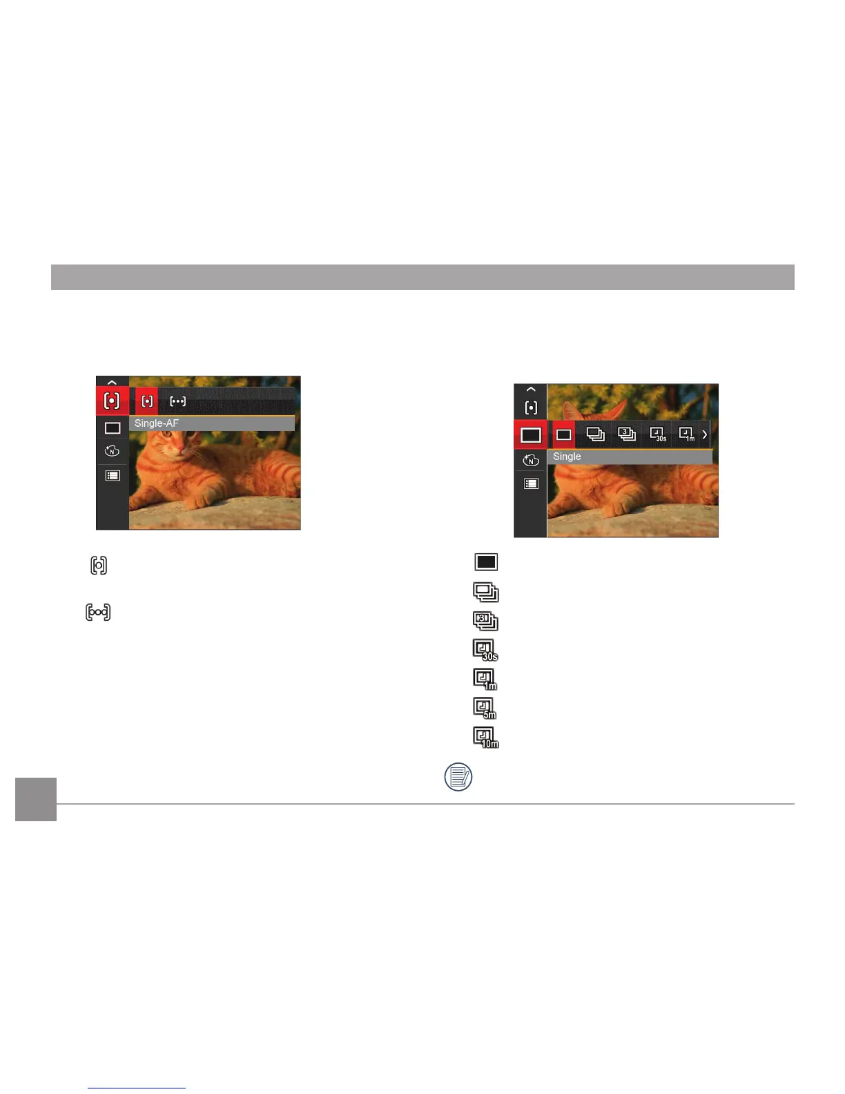 • Single-AF: The focus frame appears on the