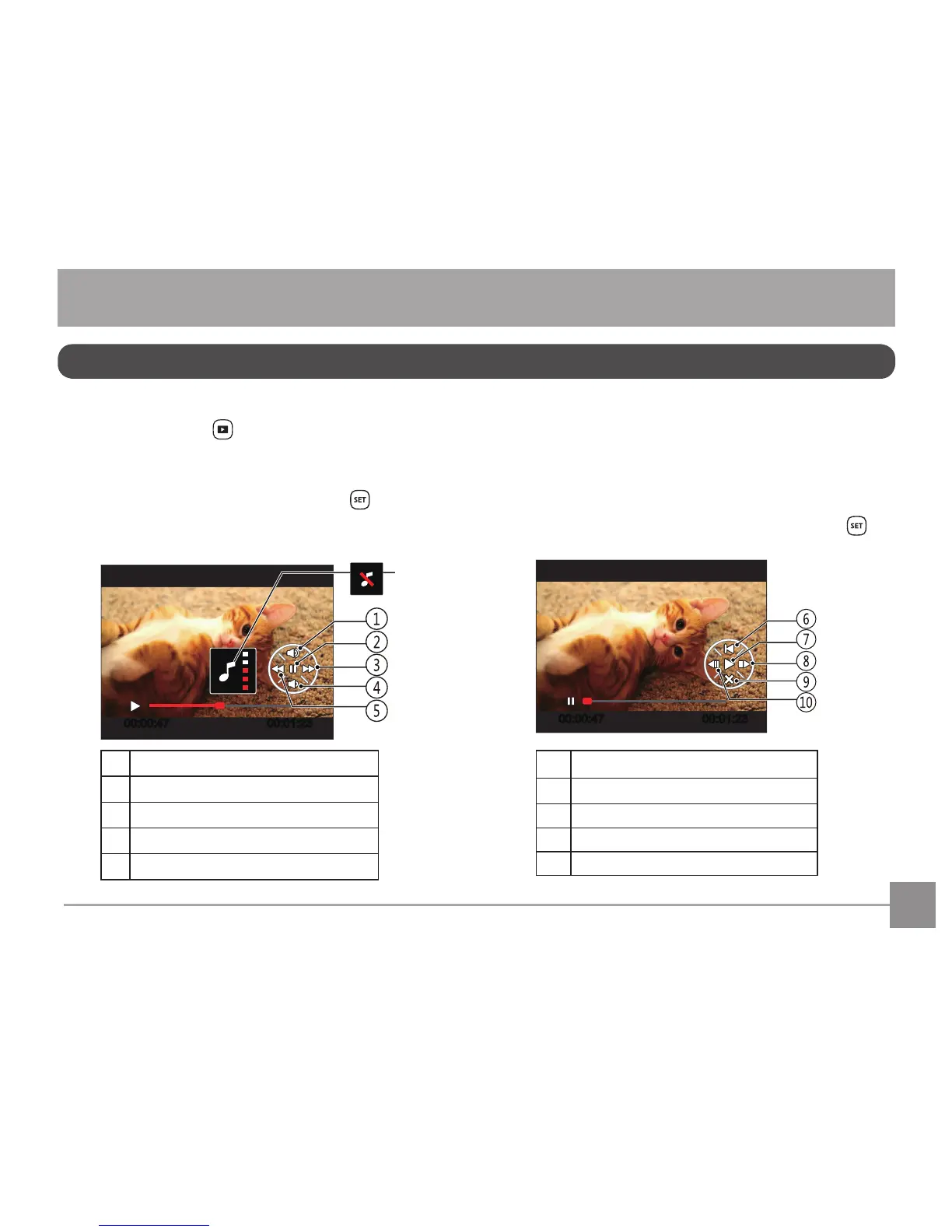 During video playback, the operating instructions will appear on the screen. Press the arrow buttons, and press the