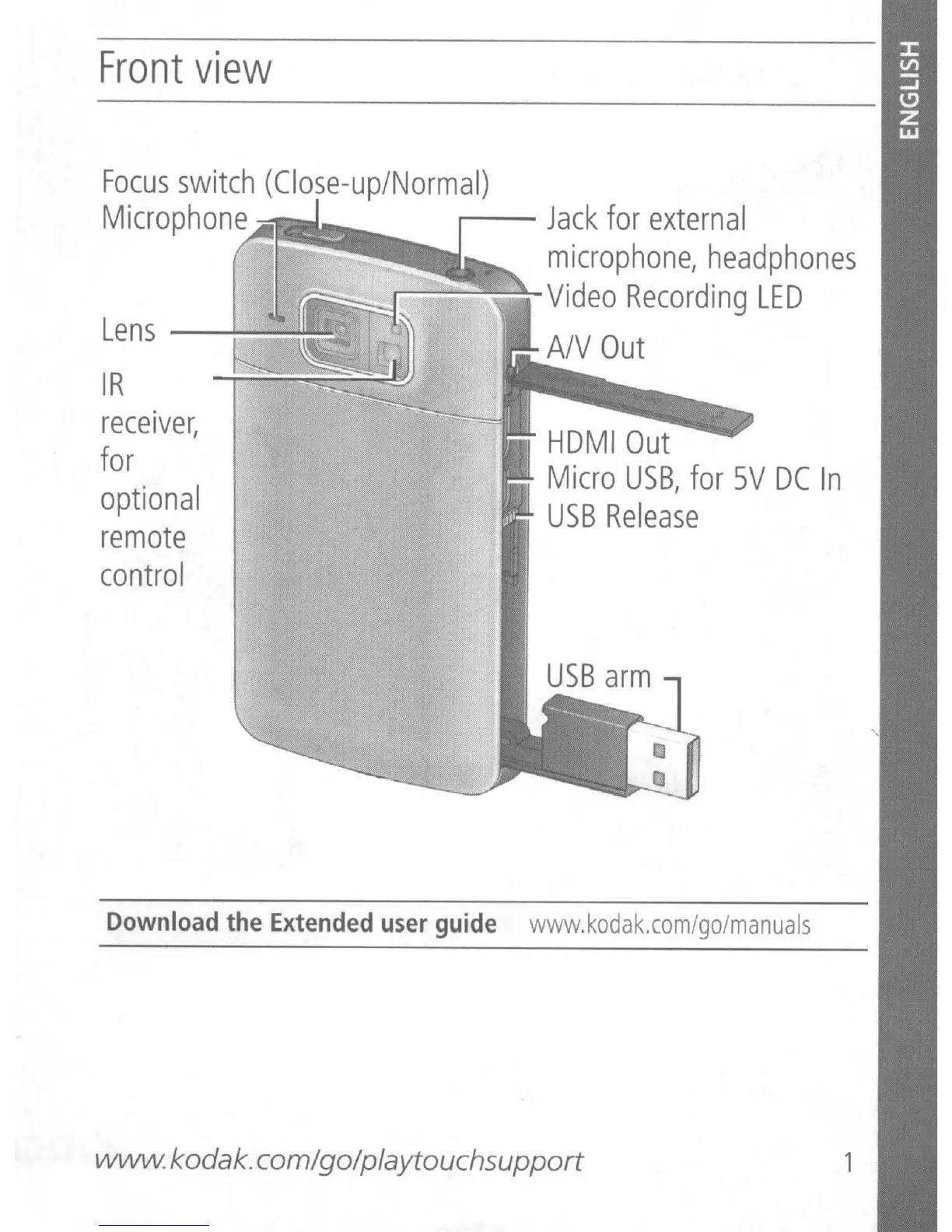 Kodak play touch - Setting Up Your Camera; Front View Overview