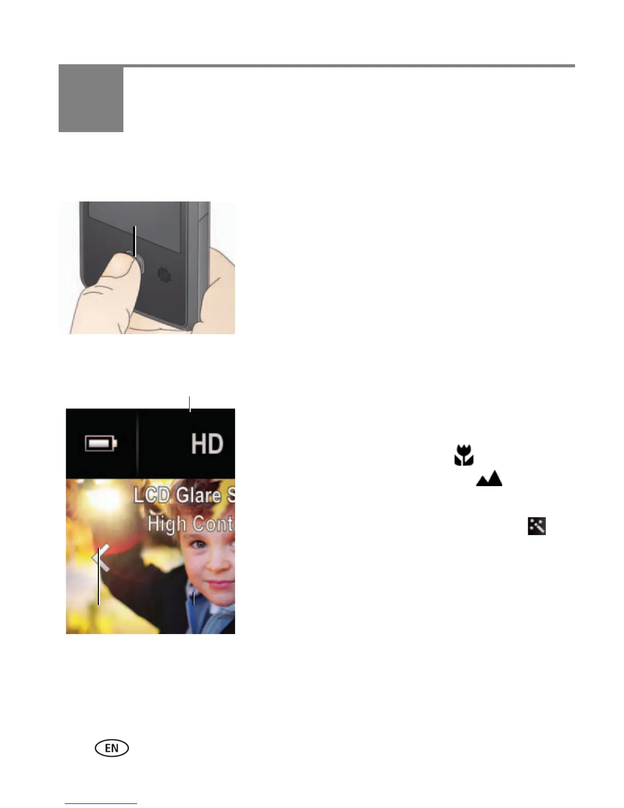 ■ Choose a video resolution (or take pictures; see