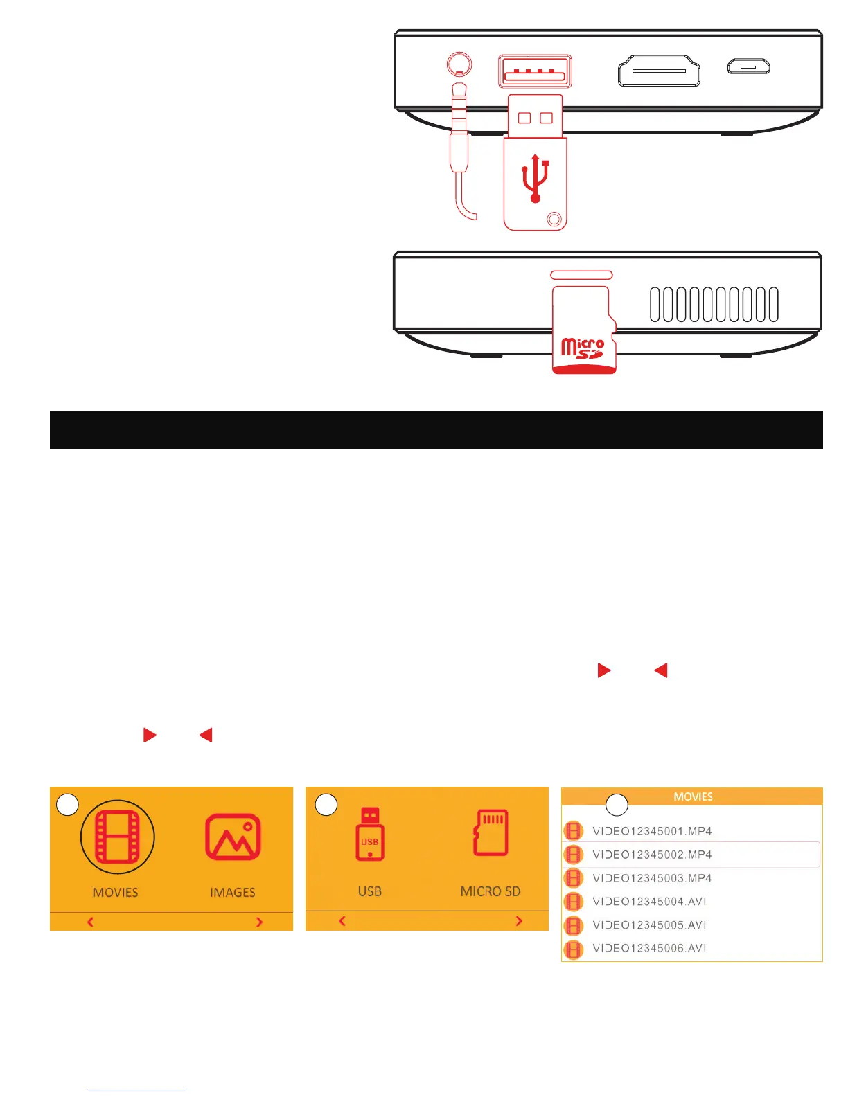 C. You will then be prompted to select either USB or MicroSD™. Use the and buttons to