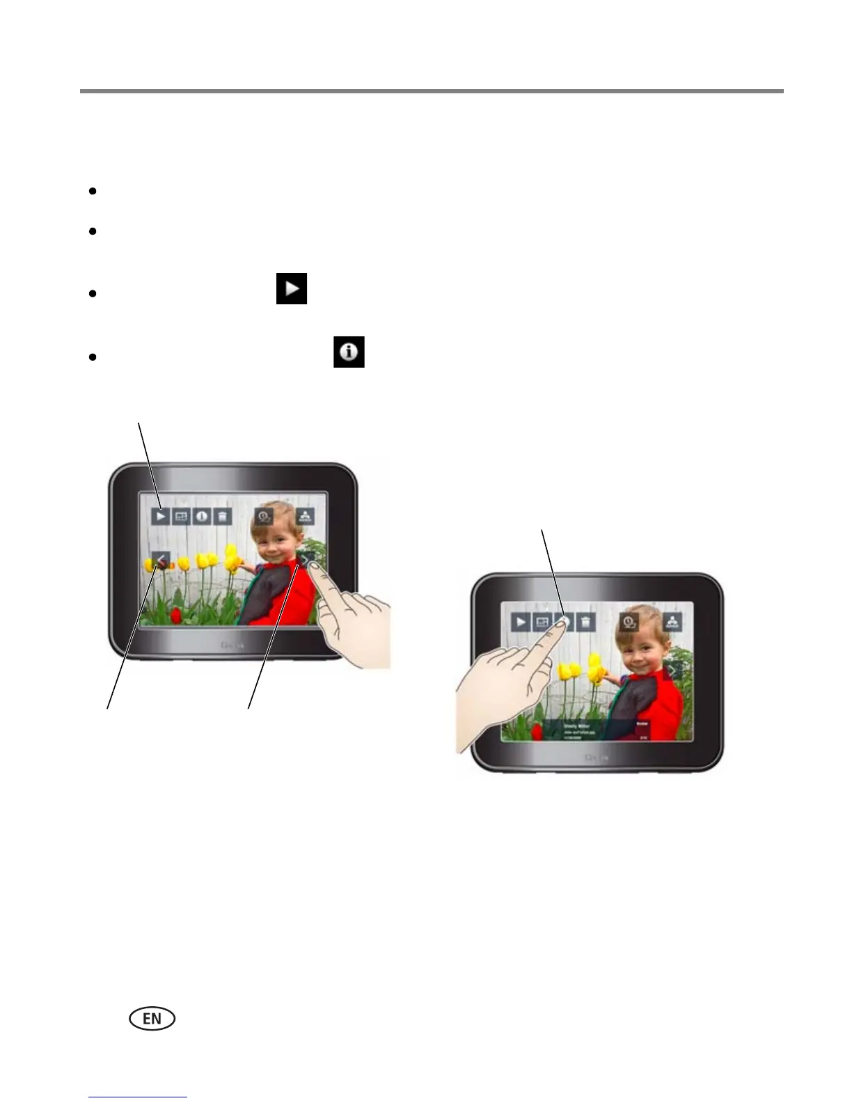 Touch the play button to start the slide show. To stop the slide show, touch the